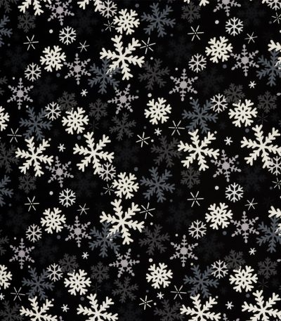 Bold and sophisticated, Winter Snowflakes in Black delivers a striking take on a seasonal classic. Soft white and silver-gray snowflakes scatter acros