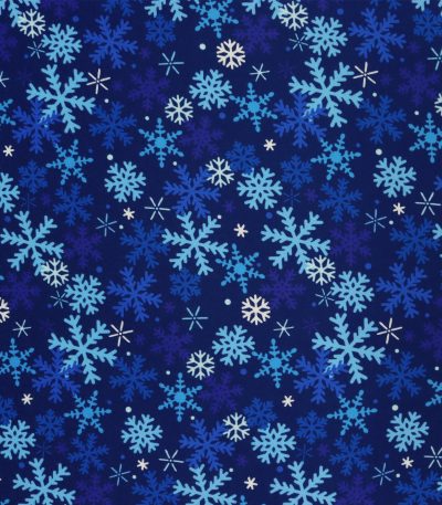 Capture the peaceful wonder of a snowy night with Winter Snowflakes in Navy. This stunning print showcases layered snowflakes in shades of blue and wh
