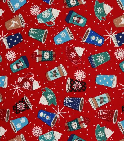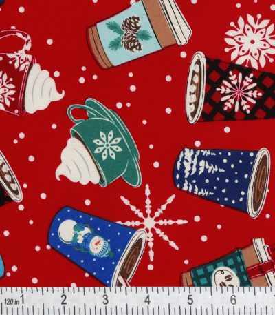 Add a jolly burst of holiday spirit to your next project with Winter Wonders Hot Cocoa in Red. This lively fabric showcases a charming collection of c