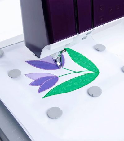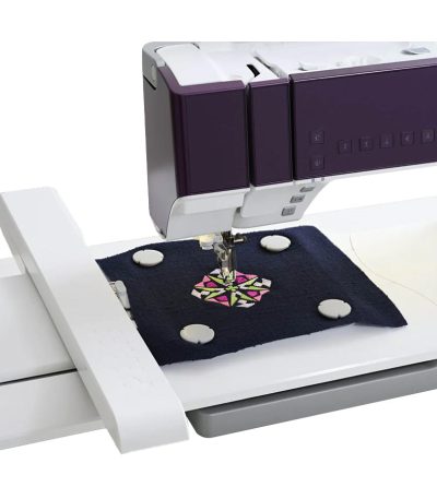 Easily hoop and embroider quilt designs with the Pfaff Quilter’s Metal Embroidery Hoop, designed to provide extra stability and convenience for quilti