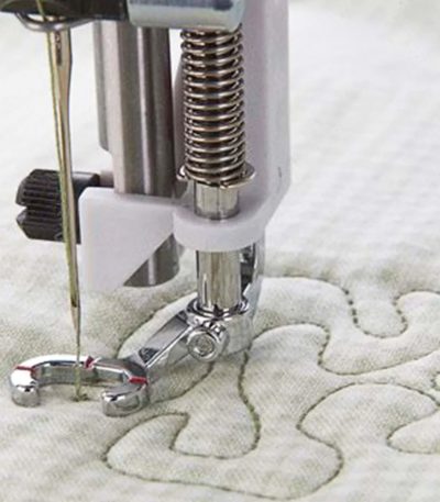 The Open Toe Free Motion Spring Foot provides clear visibility for free-motion quilting and embroidery. Its open front design allows for easy stipplin
