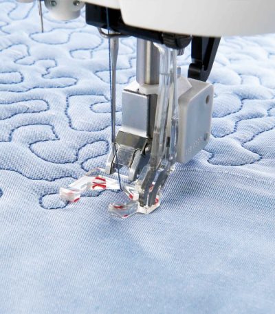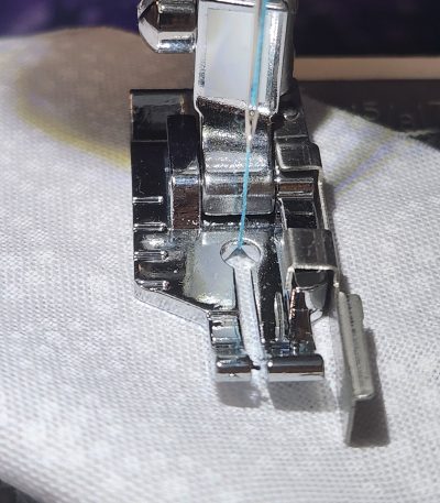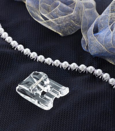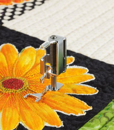 The Open-Toe Foot has an open front that allows you to see your stitches clearly. This foot is helpful for applique, monogramming, cutwork, and even q