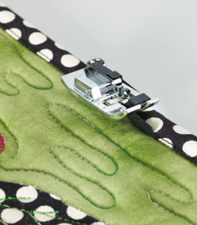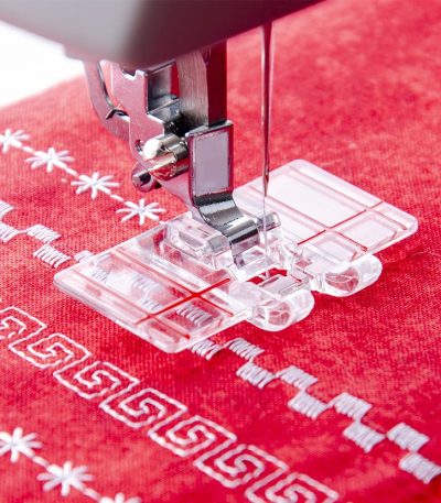 This all-purpose sewing foot is perfect for utility stitches—from straight stitch to zigzags up to 9 mm wide. It’s ideal for general sewing tasks like