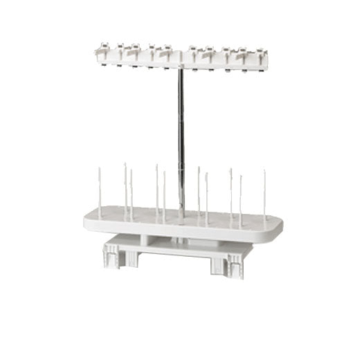 This 10-Spool Thread Stand snaps securely in place on to the machine to provide 10 vertical spool pins for thread delivery or bobbin storage. The spoo