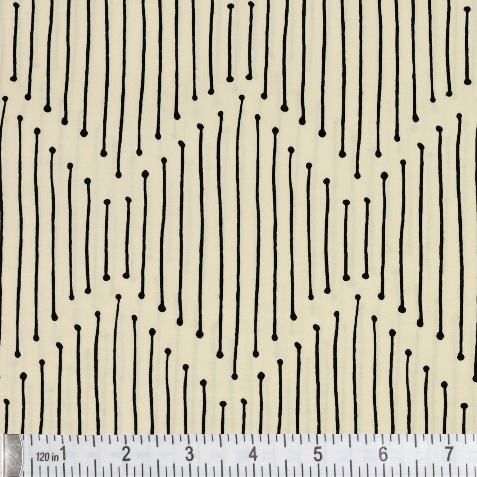 Mindful Paths by AGF Studio brings an organic rhythm to your sewing projects with its hand-drawn chevron pattern of bold black lines on a soft, neutra