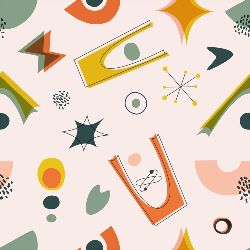 The Light Pink 1950’s Contemporary Atomic Shapes Fabric is part of the Retro Prints Fabric Collection printed by Sew Creative Fabrics. Digitally Print