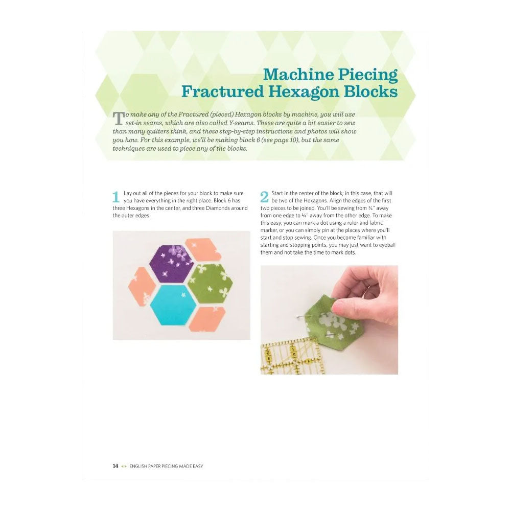 The Accuquilt English Paper Piecing Made Easy Pattern Book by Katja Marek delivers 6 gorgeous EPP patterns and 36 block ideas with detailed instructio