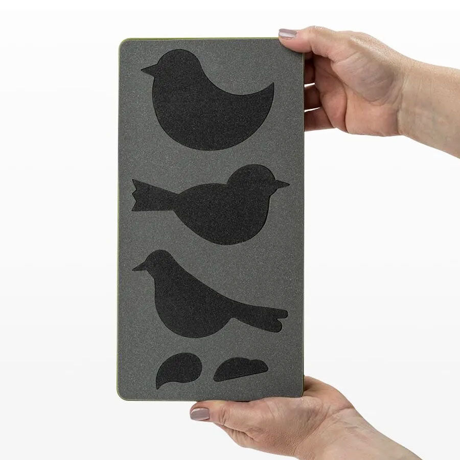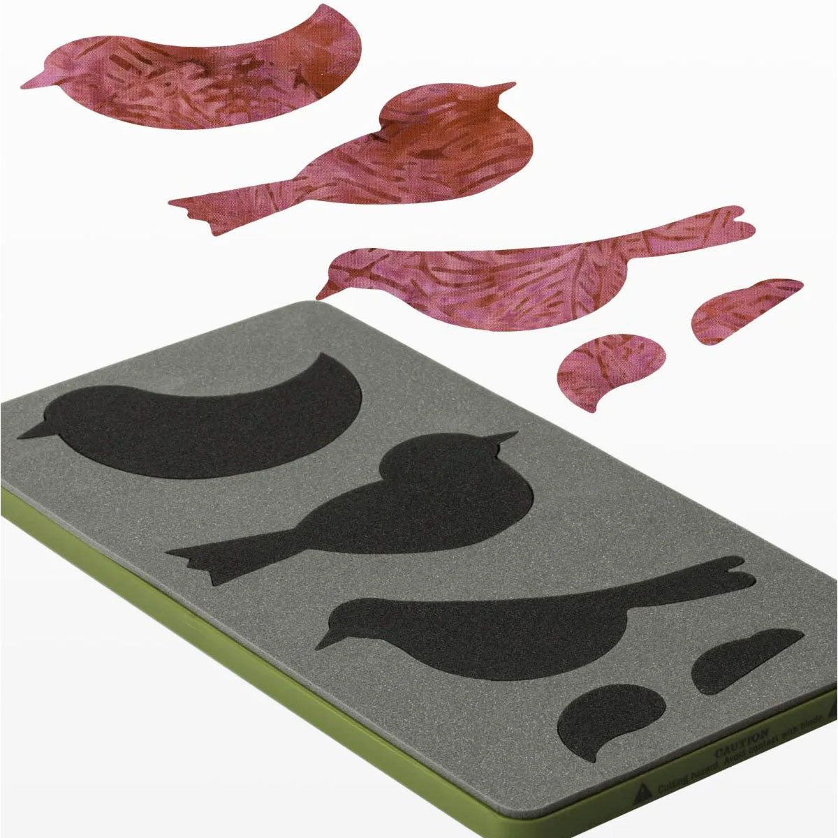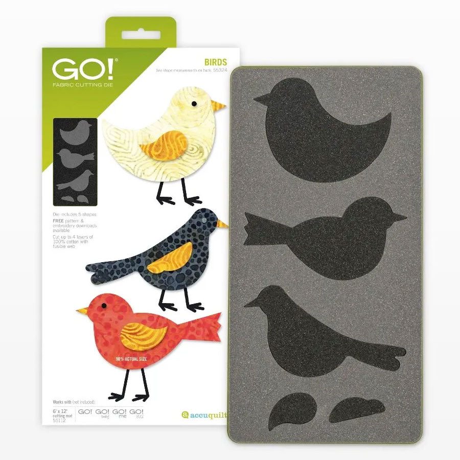 Birds are easily a quilters’ favorite, and the Accuquilt GO! Birds Die features a collection of adorable birds that make great additions to apparel, q