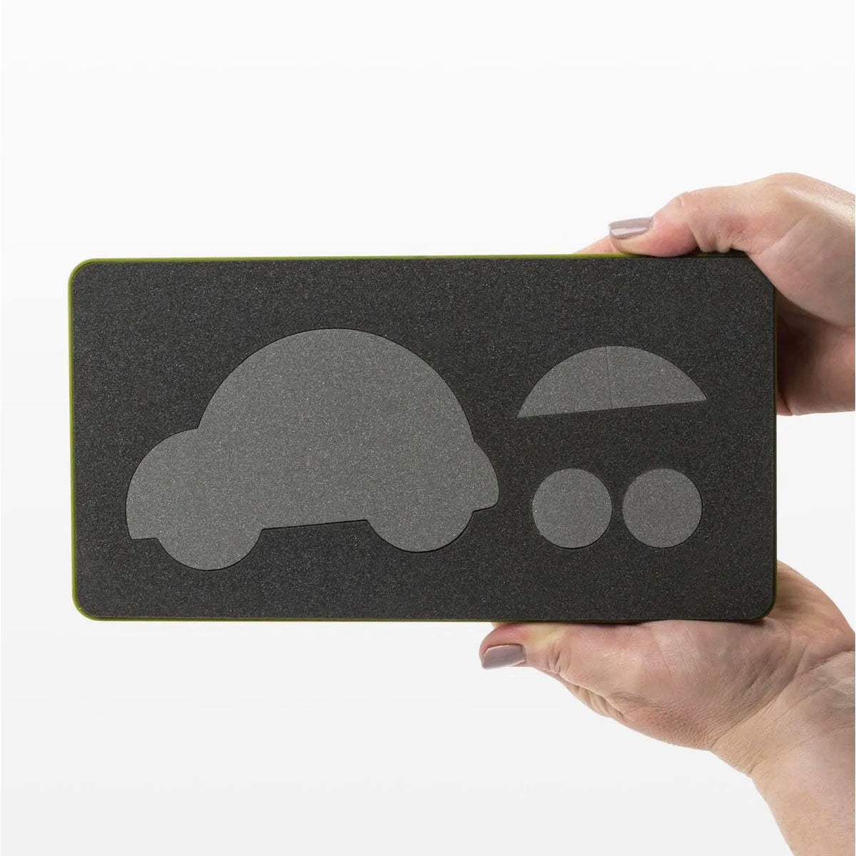The Accuquilt GO! Cute Car Die cuts 3 shapes that are challenging to cut by hand. These adorable Beatle bug cars are a great addition to baby quilts,