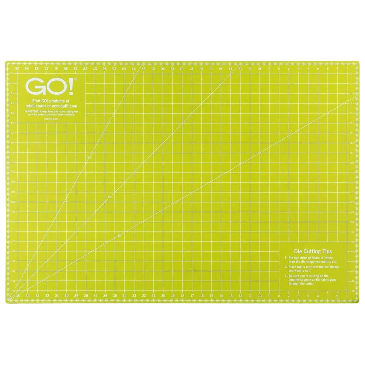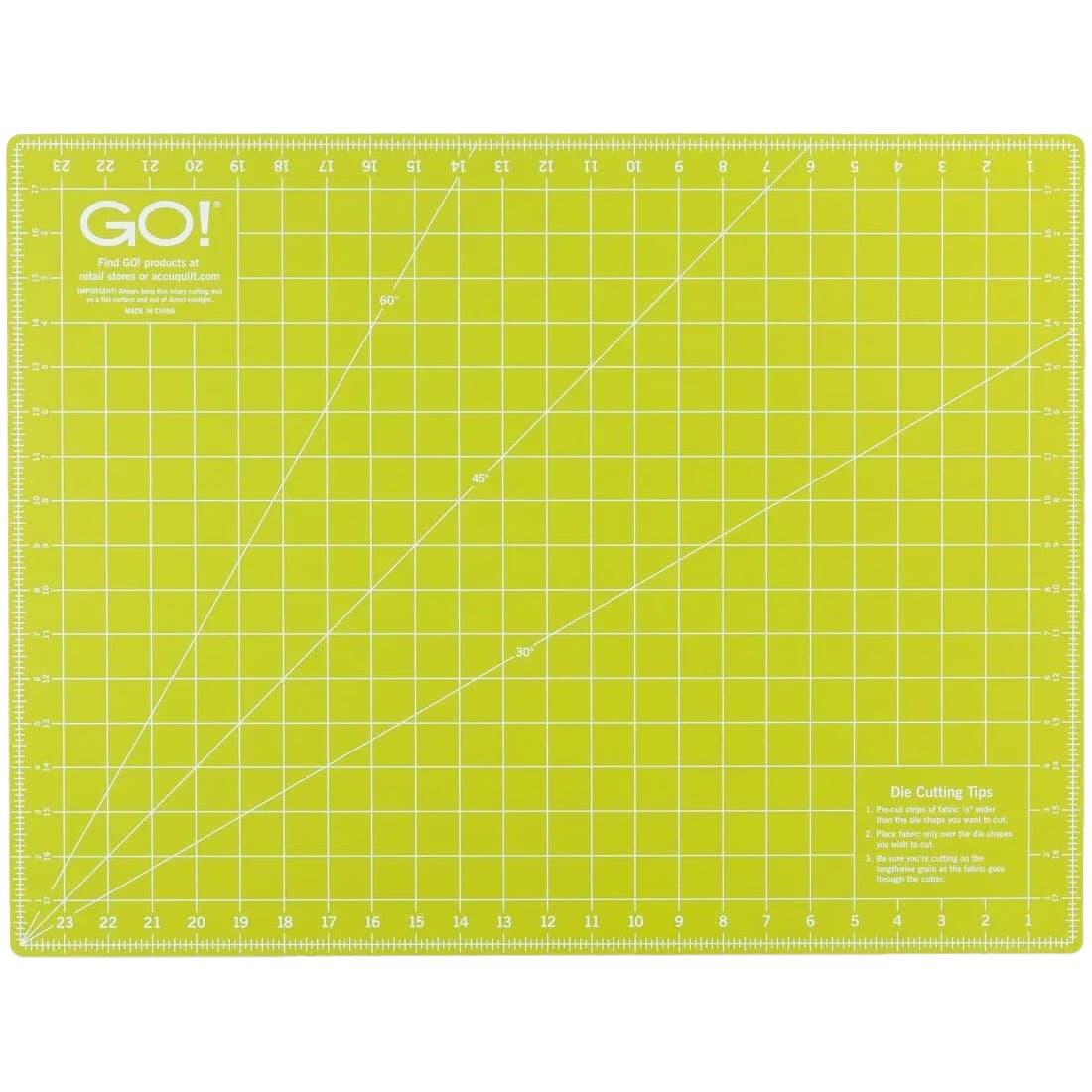 The Accuquilt GO! Double-Sided Cutting Mats are 3mm thick and self-healing! These mats feature gridlines by the inch and also 30°, 45°, and 60° angle