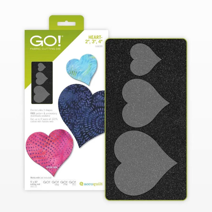 Hearts can be challenging to cut perfectly by hand, but the Accuquilt GO! Dies ensure exact cuts every time! Effortlessly cut three different-sized sy