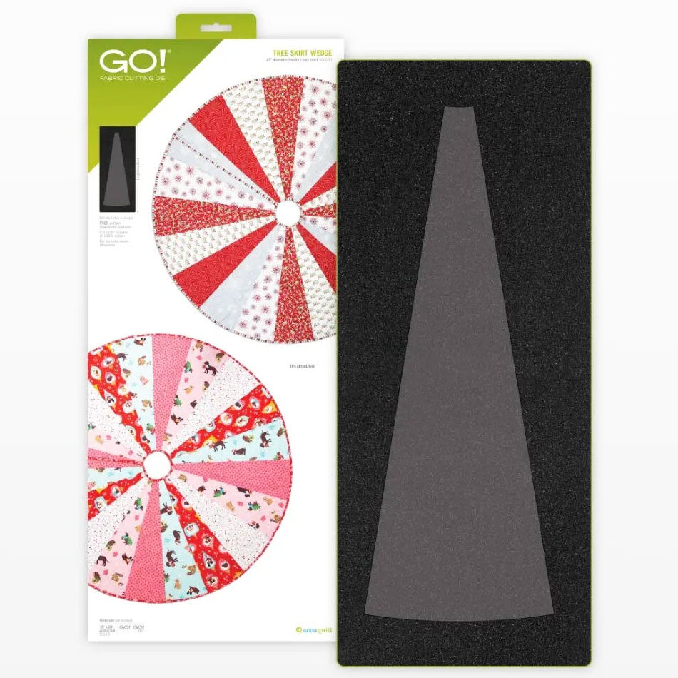 Cutting 20 fabric wedges to create a tree skirt can be a time-consuming task. Thanks to Accuquilt’s GO! Tree Skirt Wedge Die, this project is ready to