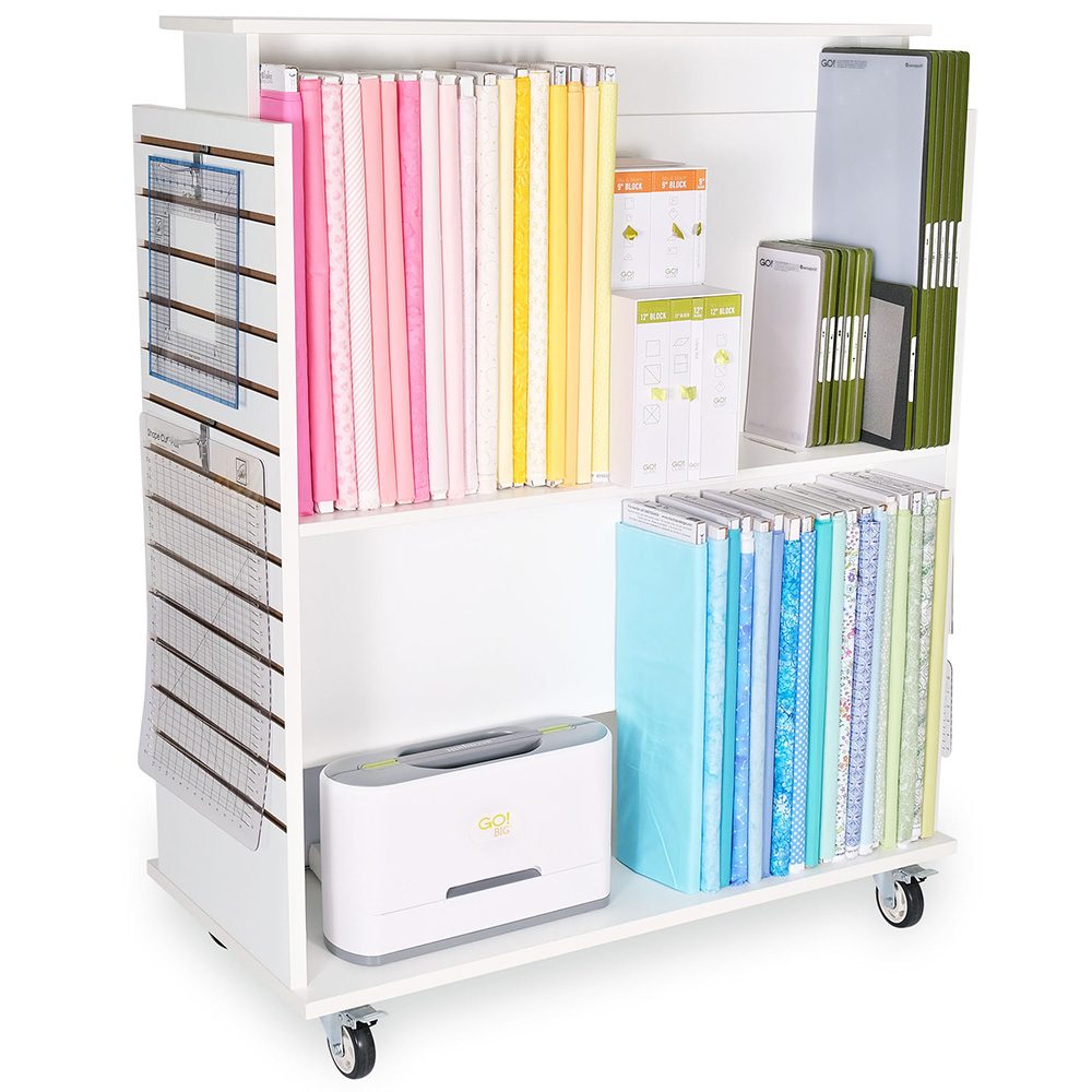 The Four Shelf Fabric Organizer from Arrow Sewing will help you design the ideal sewing studio! The large fabric organizer has four shelves, holds up