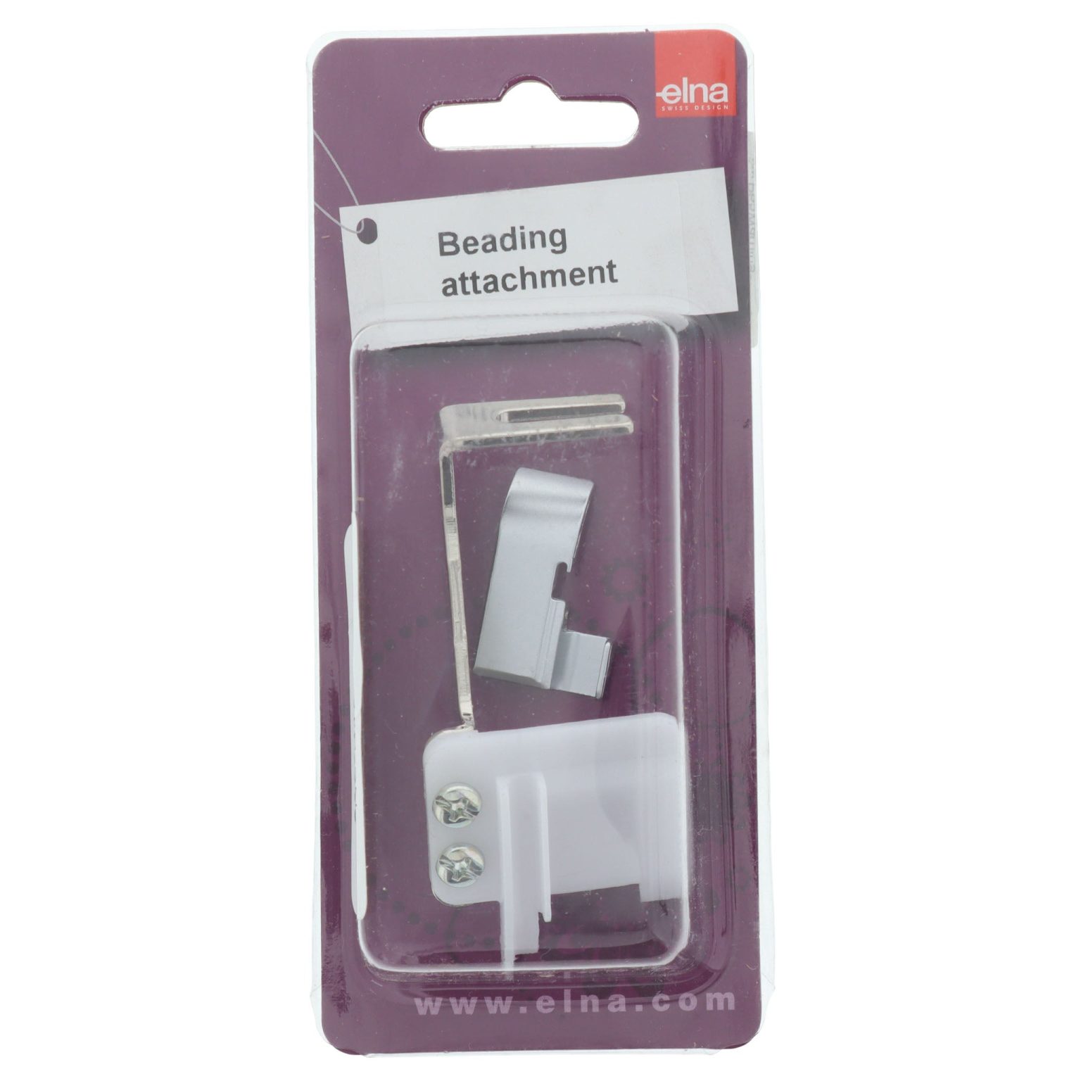 The Beading Attachment combines a unique sewing foot and guide, allowing you to sew beads to the edge of your fabric. It is mainly used for bridal wea