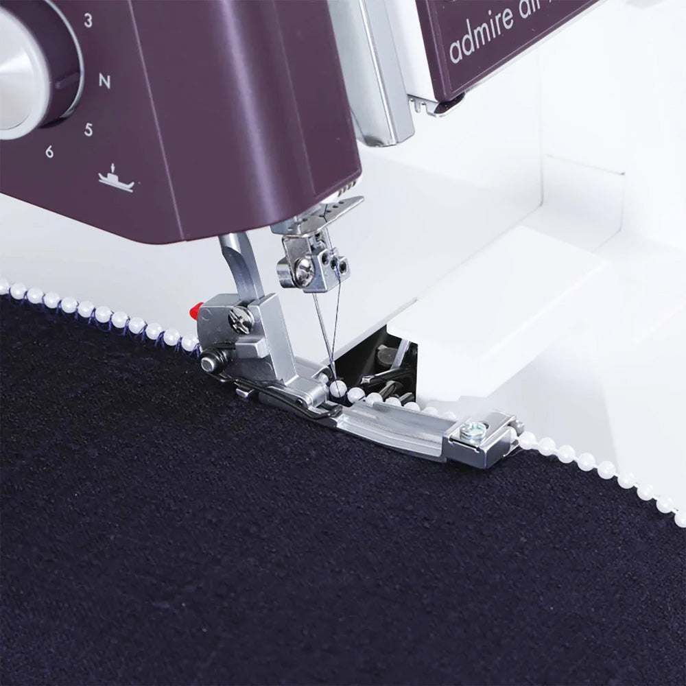 The Beading Foot is designed to smoothly guide strands of beads or pearls through a built-in channel, making it easy to stitch them in place on garmen