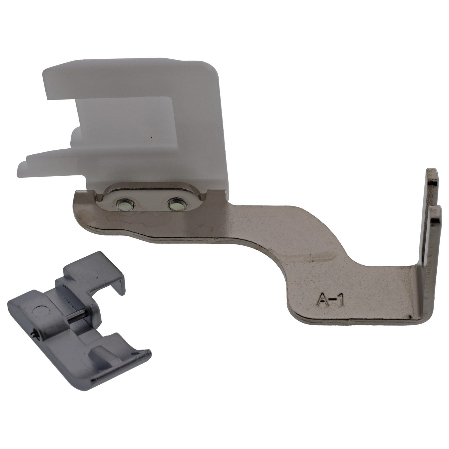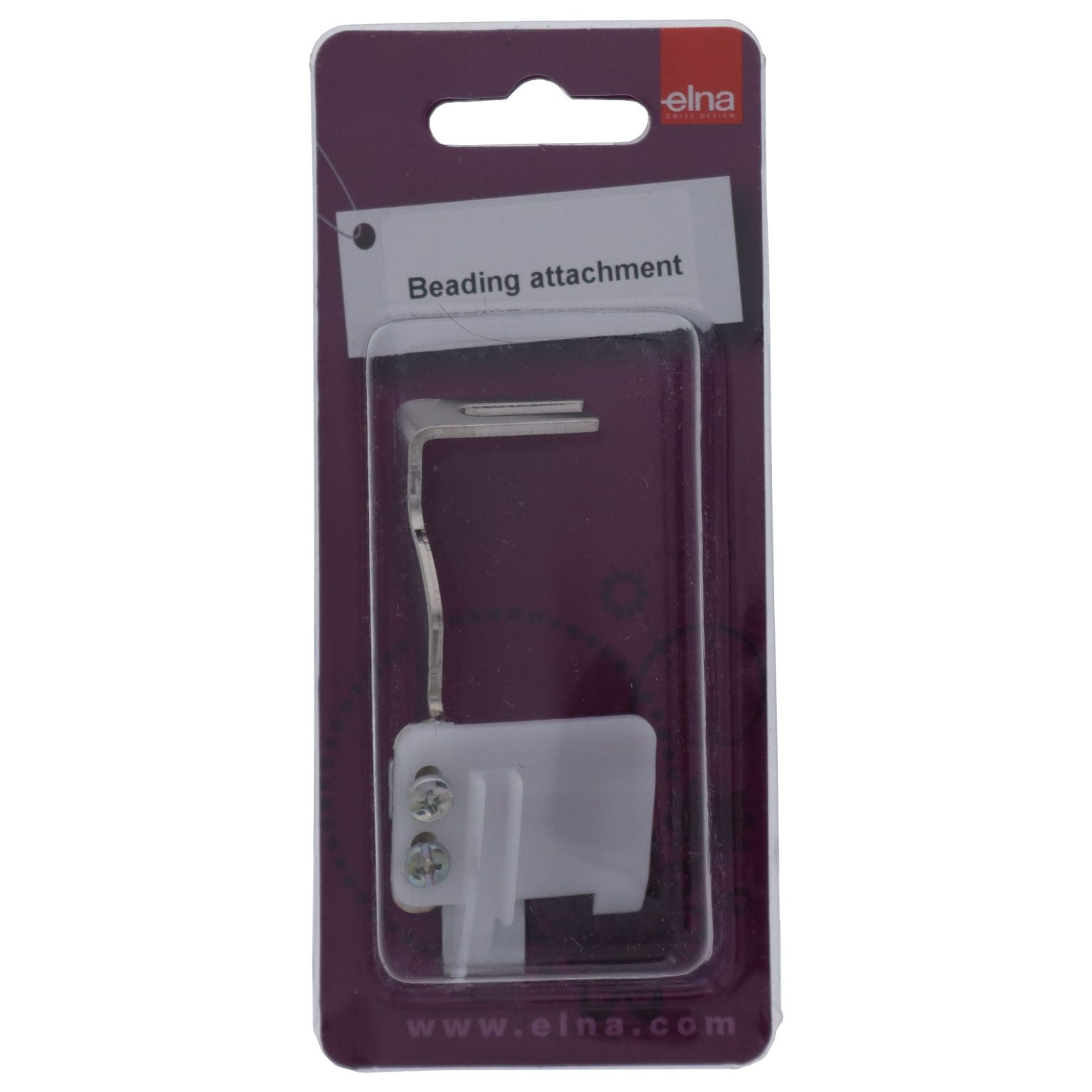 The Beading Foot, made of metal with a guide, provides the perfect placement when flat-locking strand pearls. Beaded trims make a statement on scarves