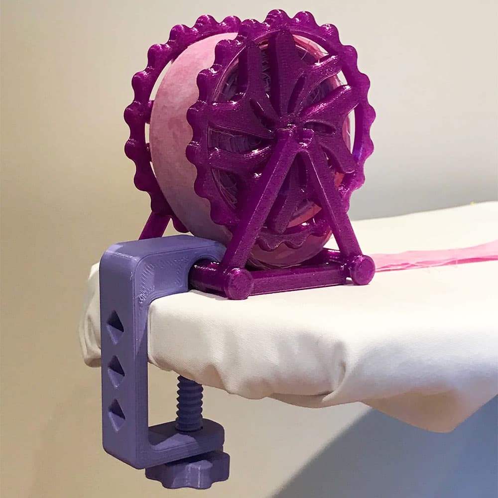 Use the Binding Wheel Clamp to temporarily attach the Binding Wheel (not included) to your ironing board’s edge to make it even easier to roll up the