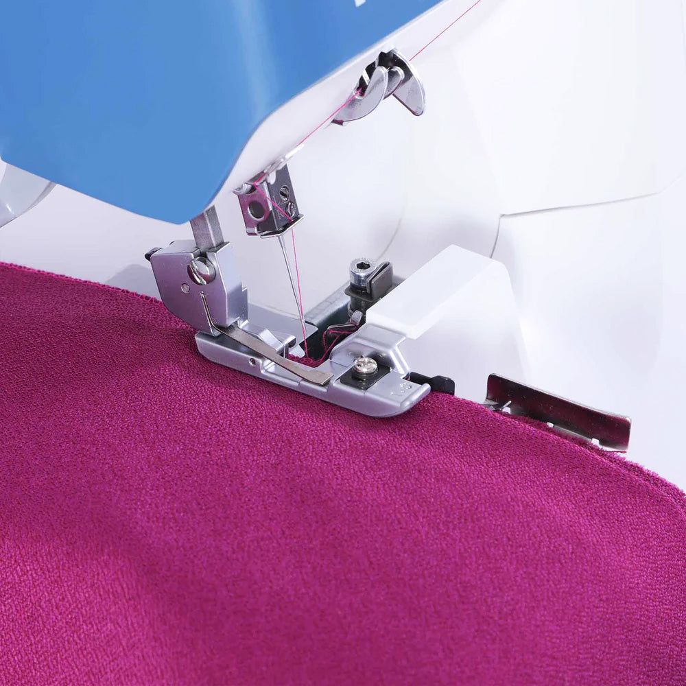 The Blindhem Foot is perfect for sewing nearly invisible hems with a professional touch. It allows you to sew, overcast, and trim the hem edge all in