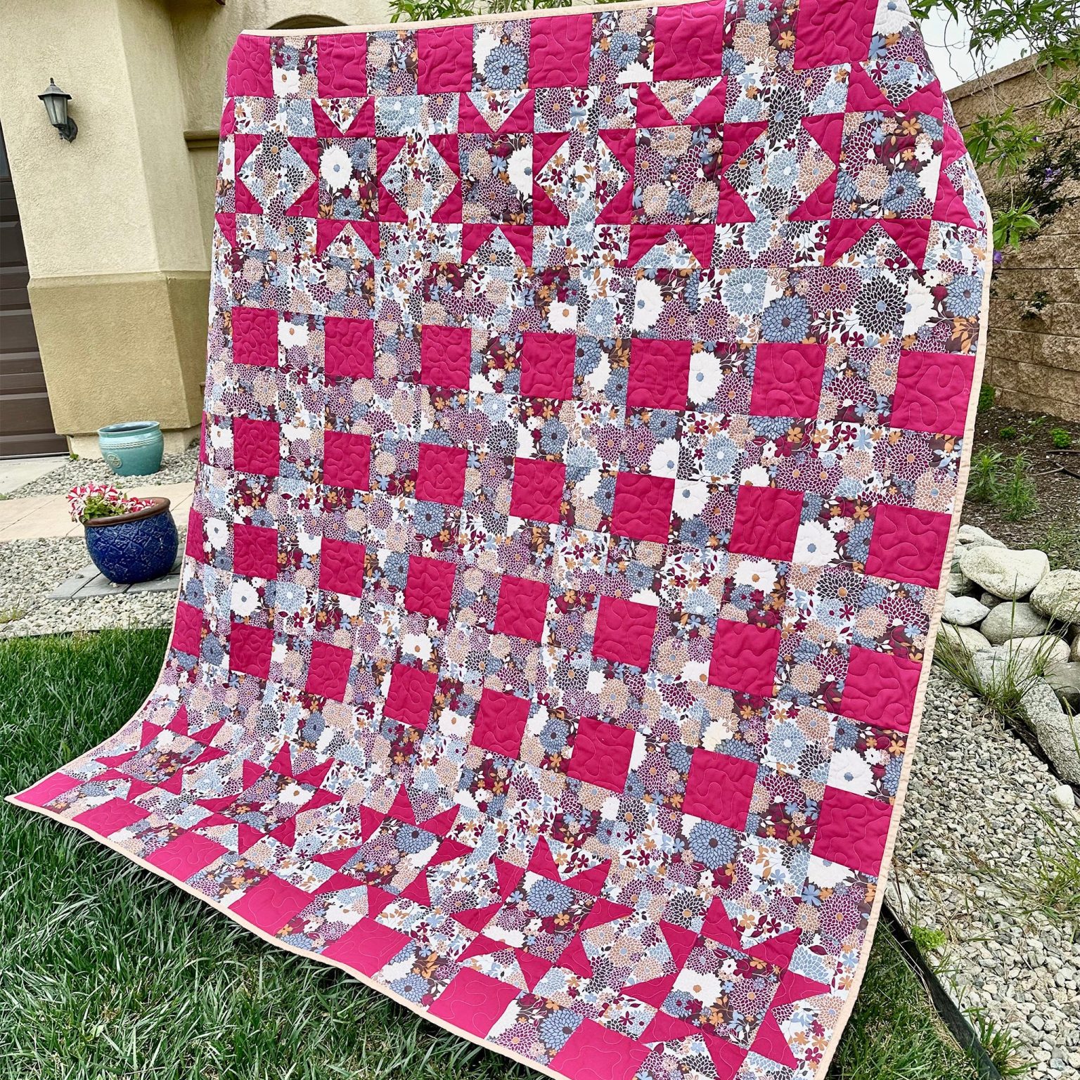 The Buffalo Stars Quilt Pattern by Ellen Perez from Mojave Farms features simple squares and triangles. Suitable for both beginners and experienced qu