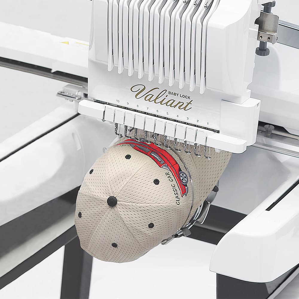 The Baby Lock Cap Frame Hoop Set makes embroidering caps quick and easy. The snap-on hoop allows you to embroider up to 2-3/8