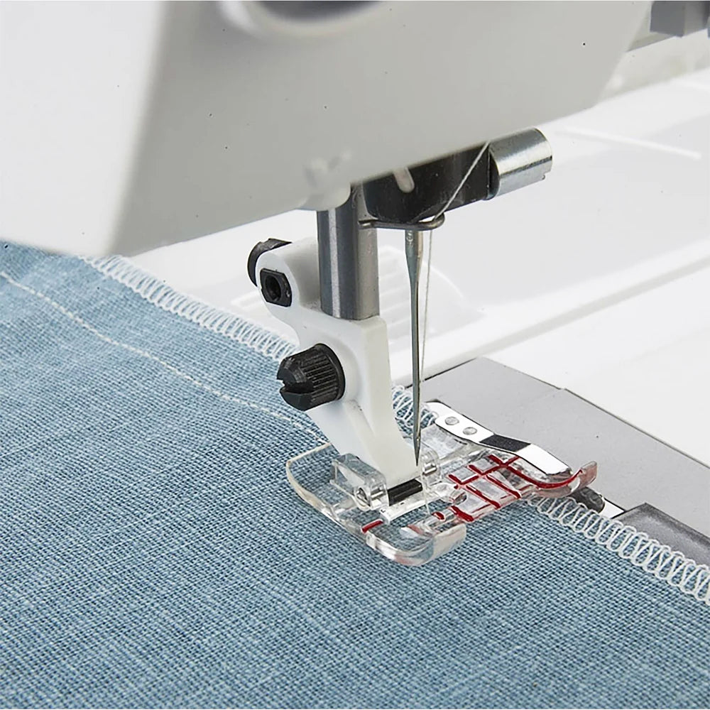 The Clear Seam Guide Foot For IDF System ensures precise stitching when joining fabrics, keeping the seam allowance consistent throughout your project