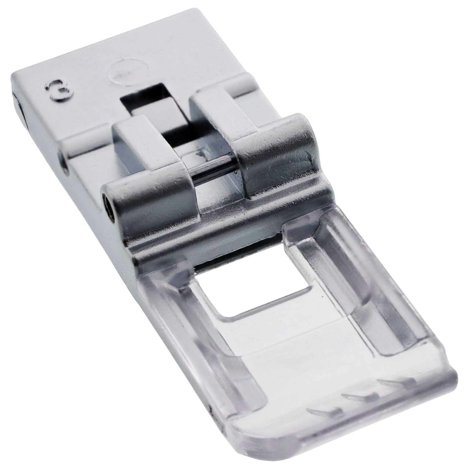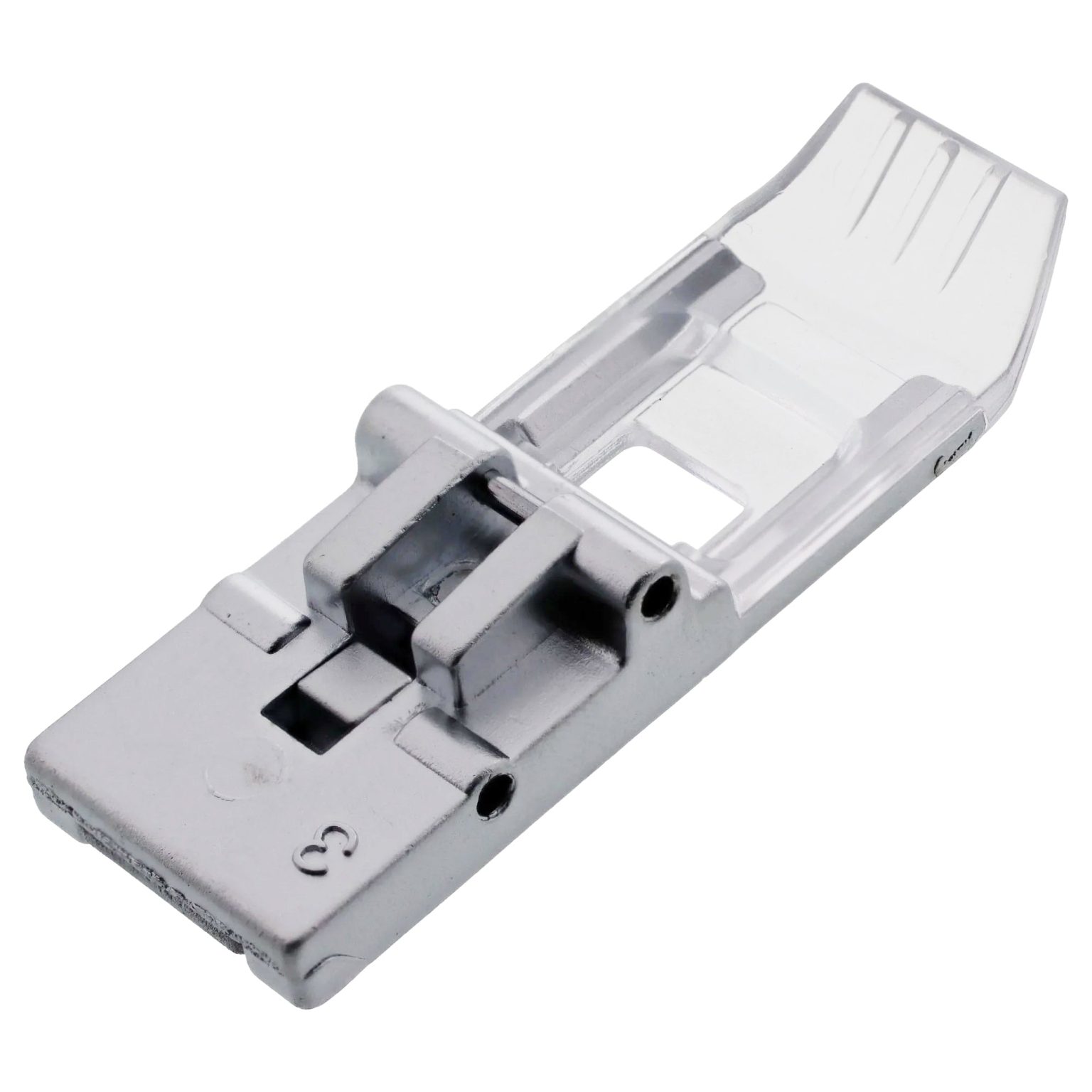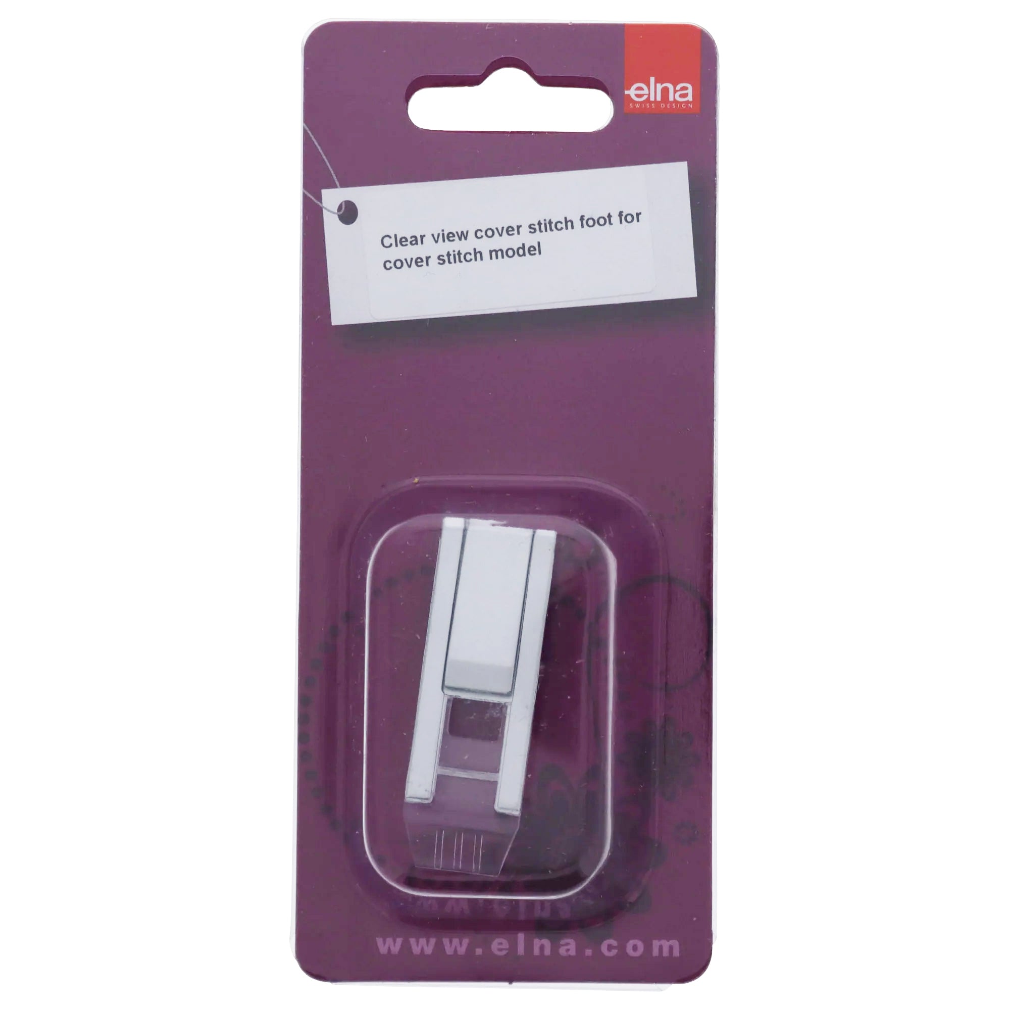 The Clear View Cover Stitch Foot is partially transparent. This foot provides complete visibility, giving you more space to exercise your creativity.G