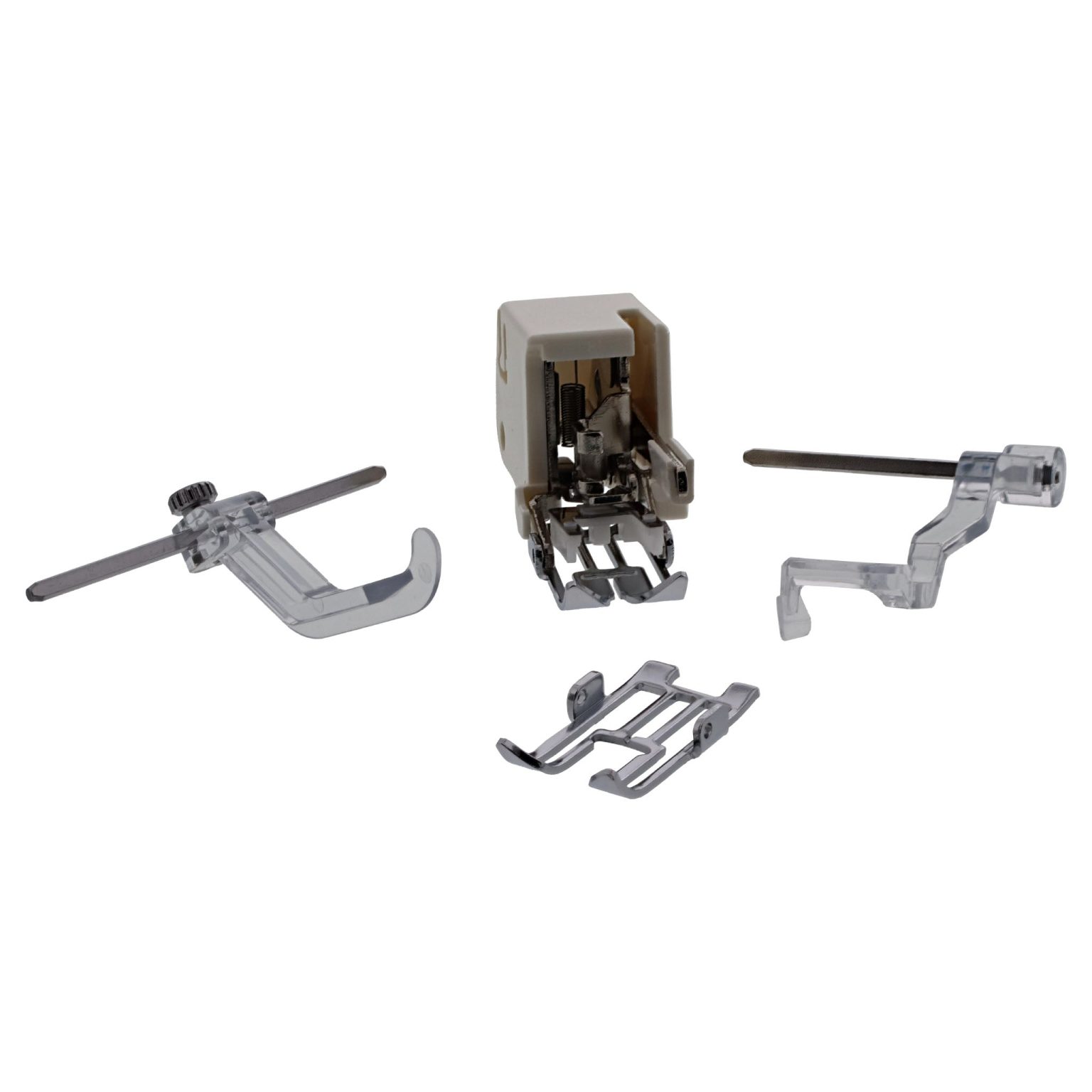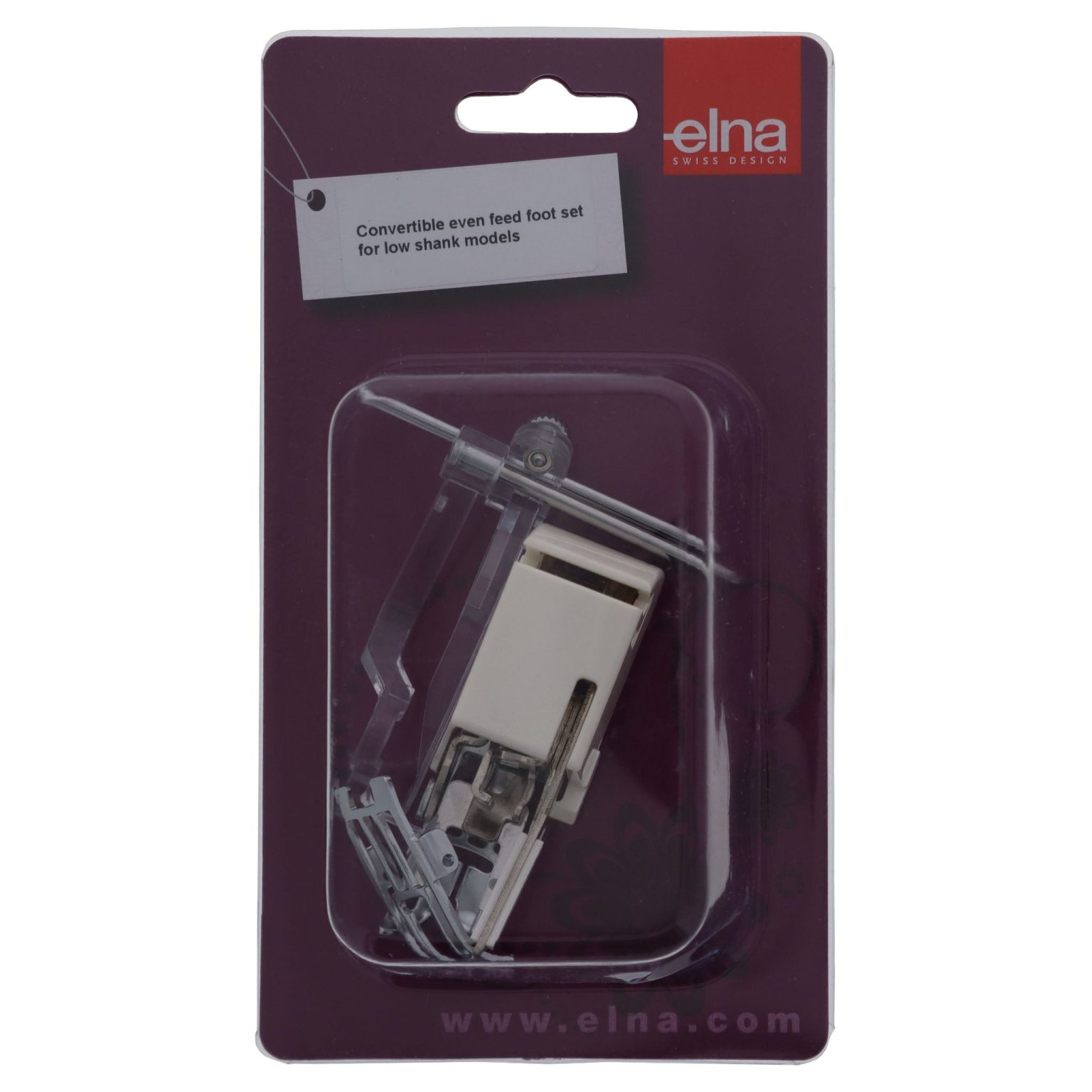The Convertible Even Feed Low Shank Set has convenient features mainly for quilters. This set includes all the necessary feet, such as an Even-Feed Fo