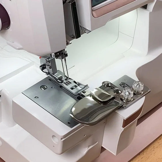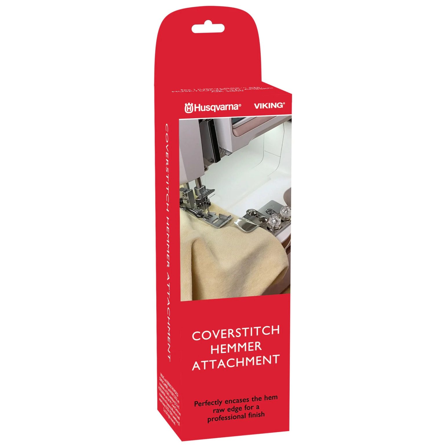 The HUSQVARNA® VIKING® Coverstitch Hemmer Attachment effortlessly turns under a 1-inch (25mm) hem, creating a perfectly straight finish without the ne