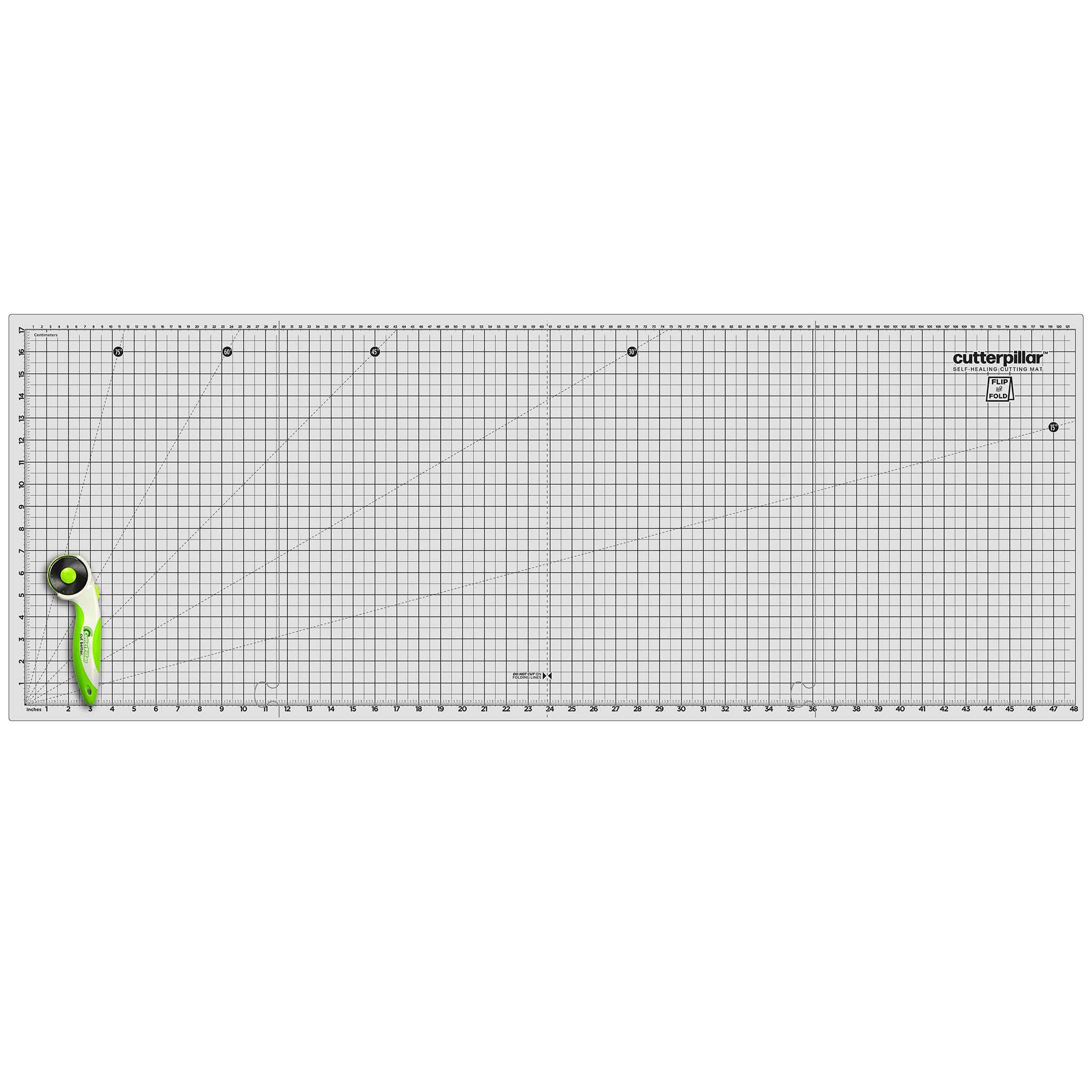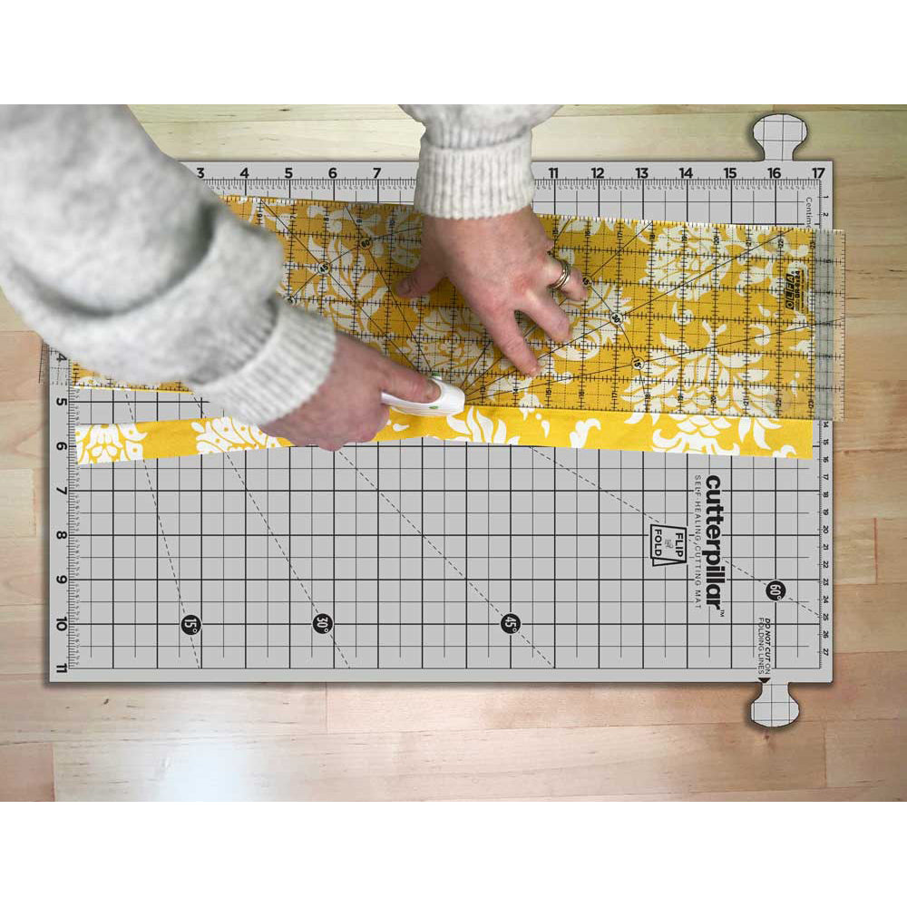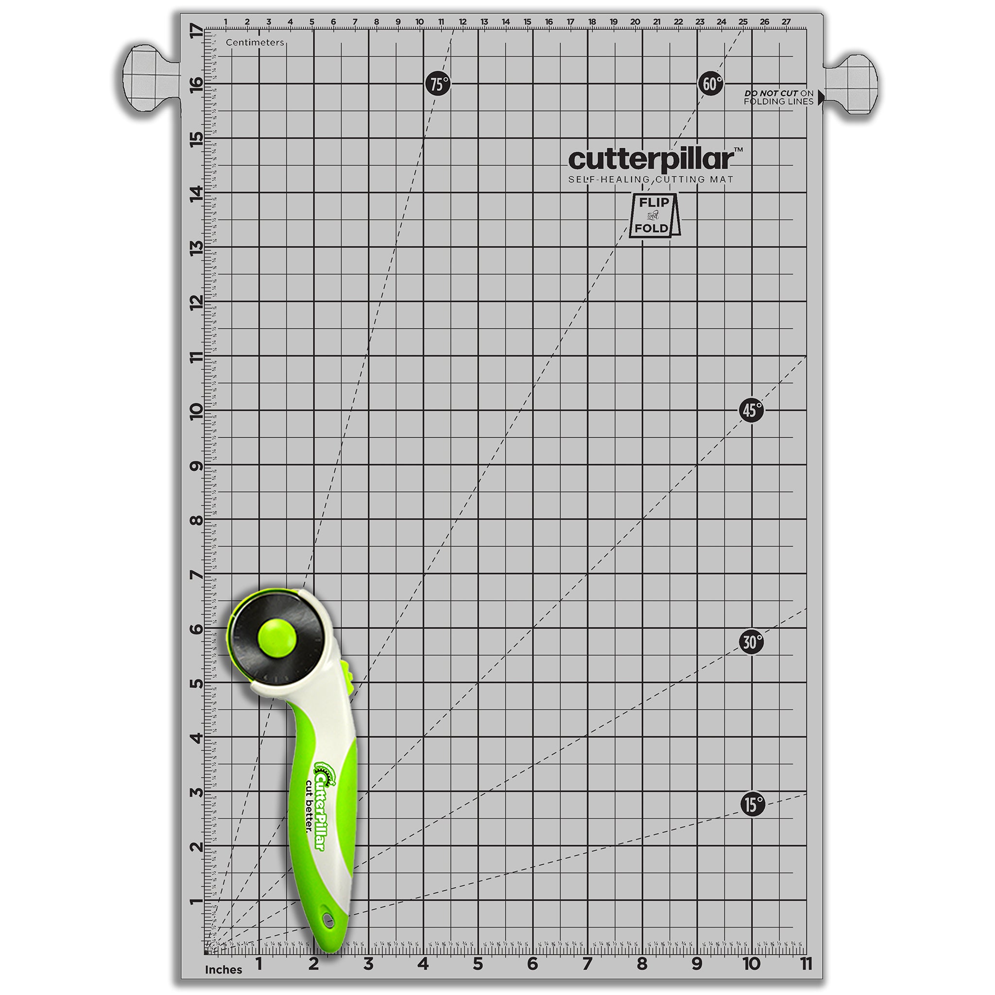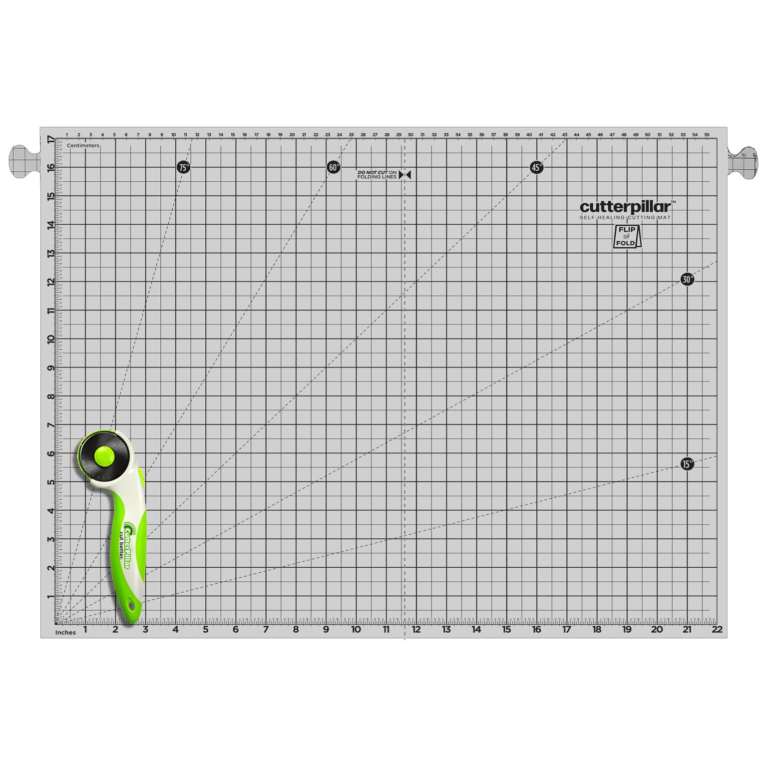 Cutterpillar Flip-N-Fold Cutting Mat is precisely what the name says. It is the first of its kind! Flip-N-Fold is a 12×18