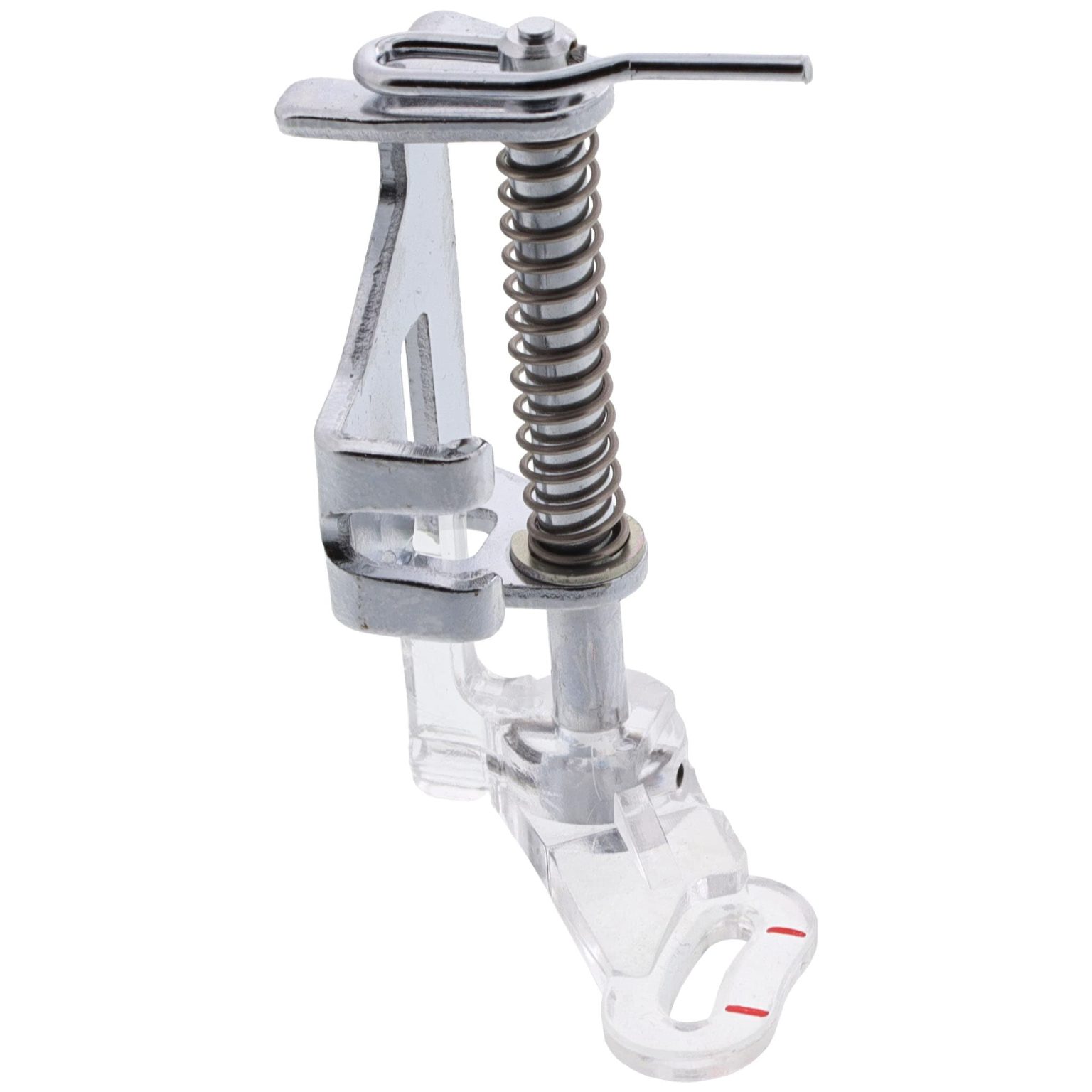 The Darning Foot, also called a free-motion foot, allows you to avoid skipped stitches when free-motion embroidering. It is also helpful for stippling