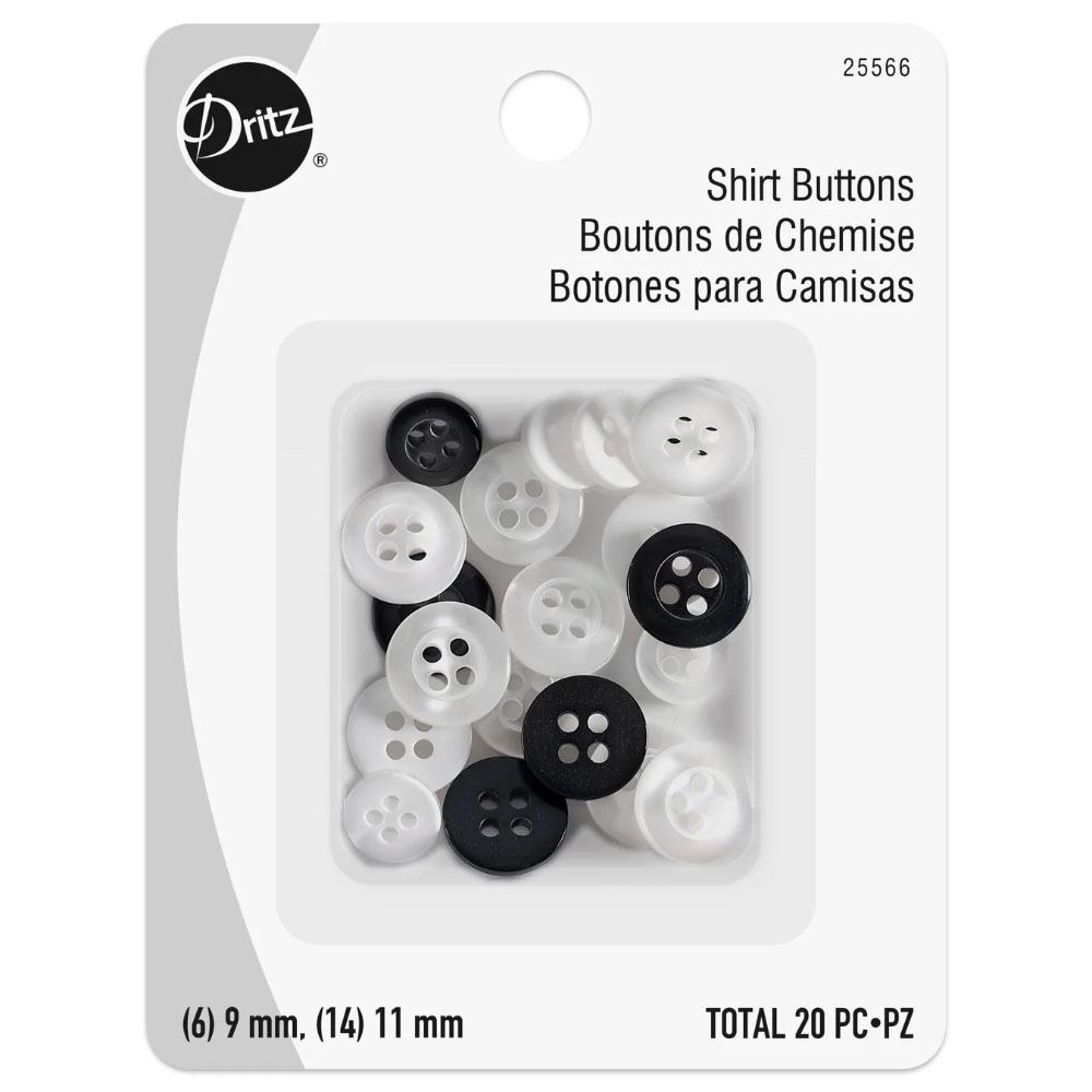 Dritz, Assorted Shirt Buttons (20pc) – 9mm & 11mm