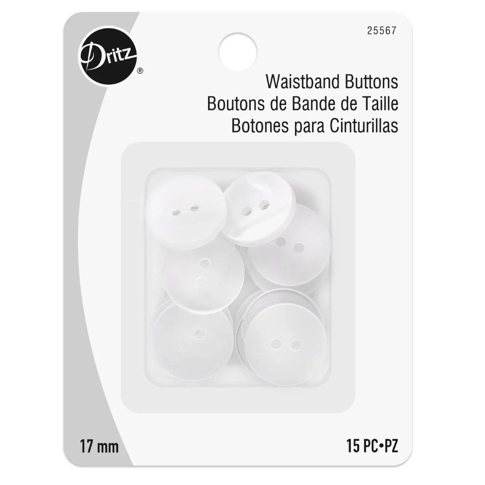 Dritz, White Pearl Waistband Buttons (15pc) – 17mm