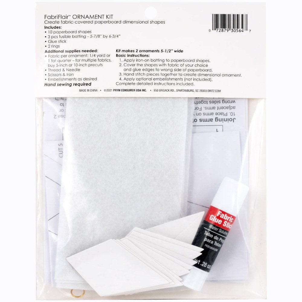 Use the FabriFlair Star Ornament Kit to create exquisite fabric-covered three-dimensional ornaments. Hand-stitch leftover fabric scraps and embellish