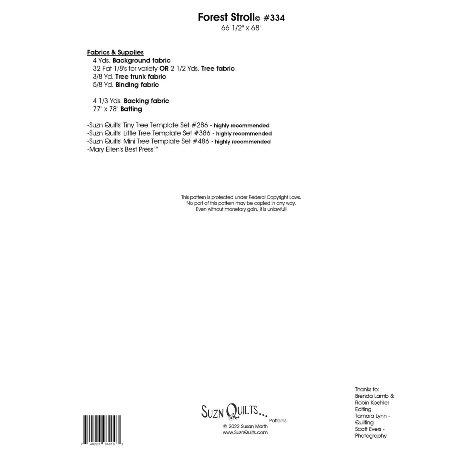 Take a stroll through a whimsical patchwork forest with the Forest Stroll Quilt Pattern by Susan Marth of Suzn Quilts. This delightful, tree-filled de