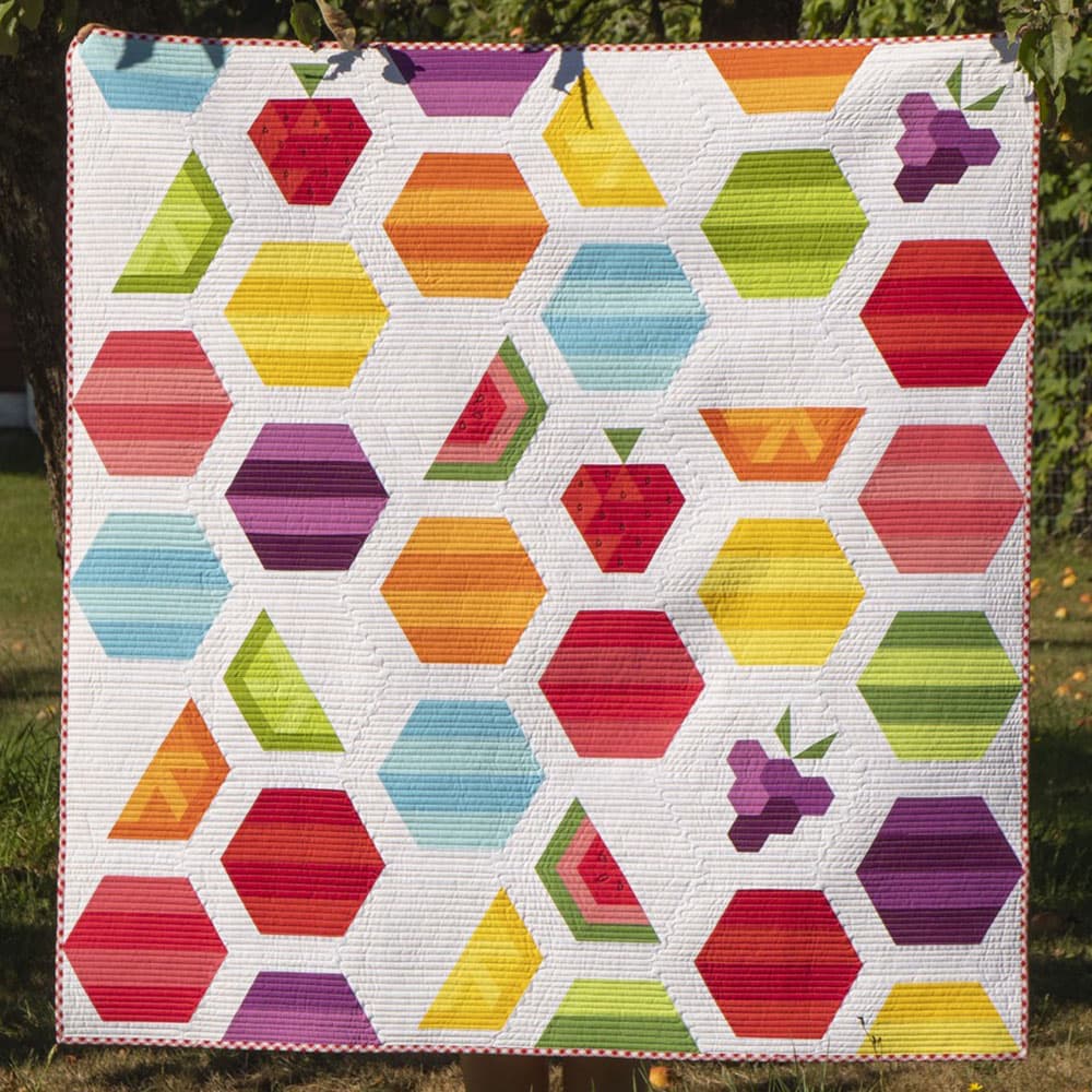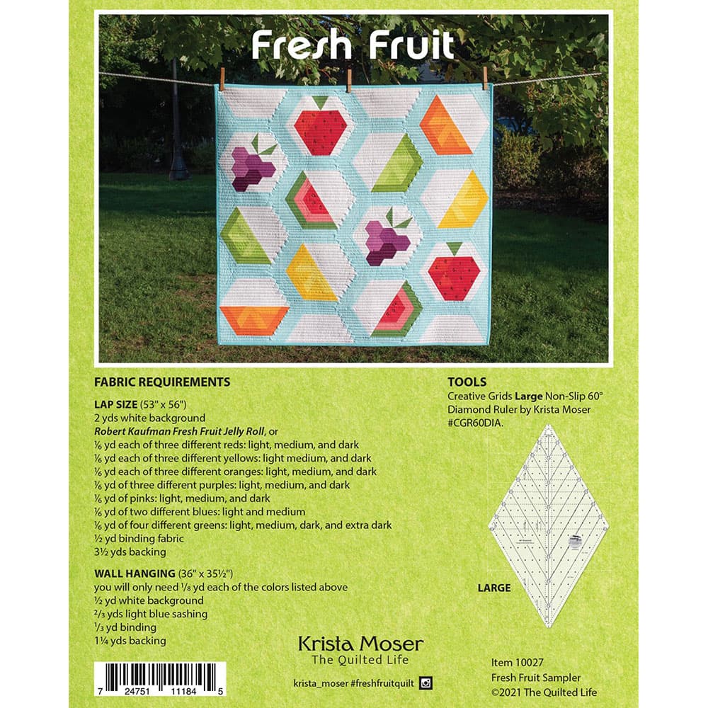 Fresh Fruit by Krista Moser is a fun sampler quilt with each block teaching a new way to use the Large Creative Grids, a 60-degree diamond ruler. This