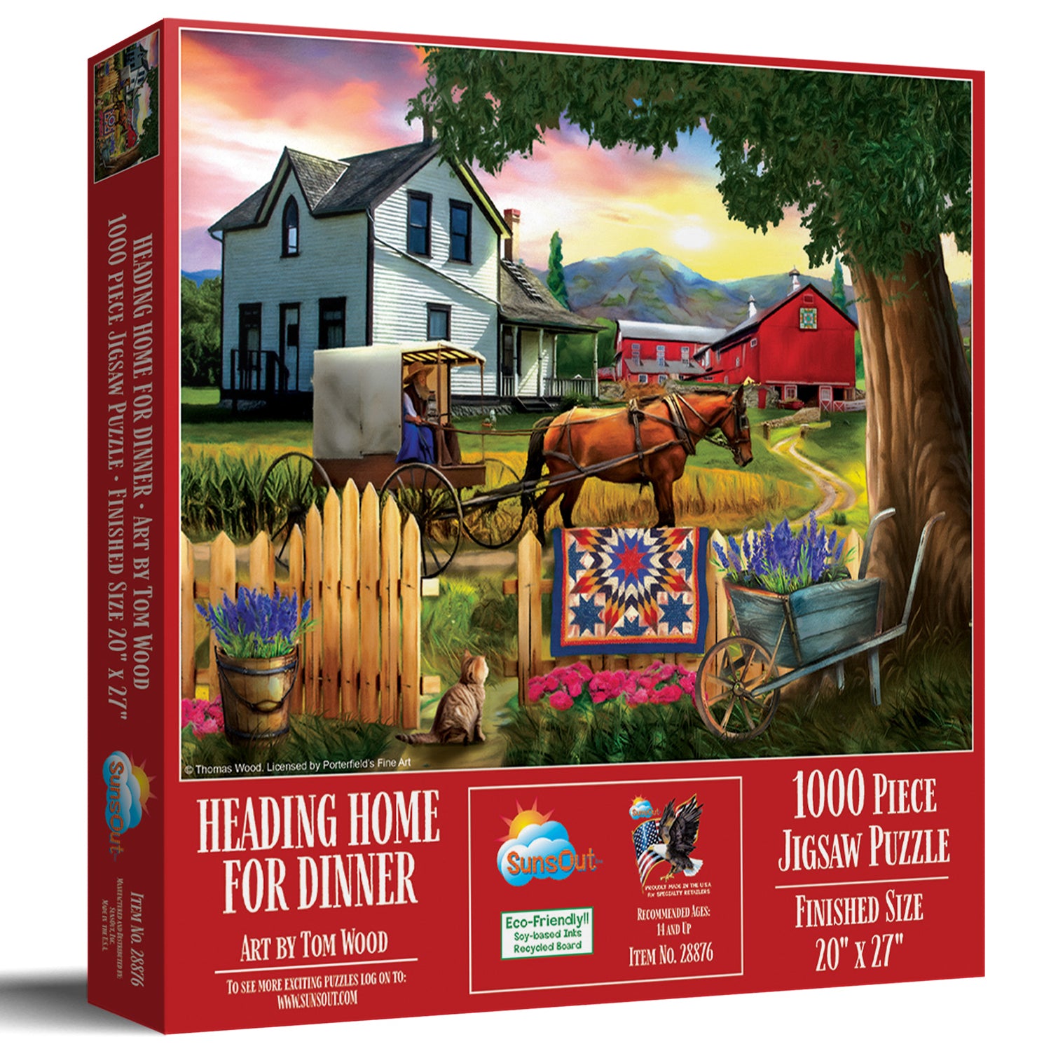 Capture the warmth of a cozy countryside evening with the SunsOut Heading Home for Dinner 1000-Piece Jigsaw Puzzle, featuring heartwarming artwork by