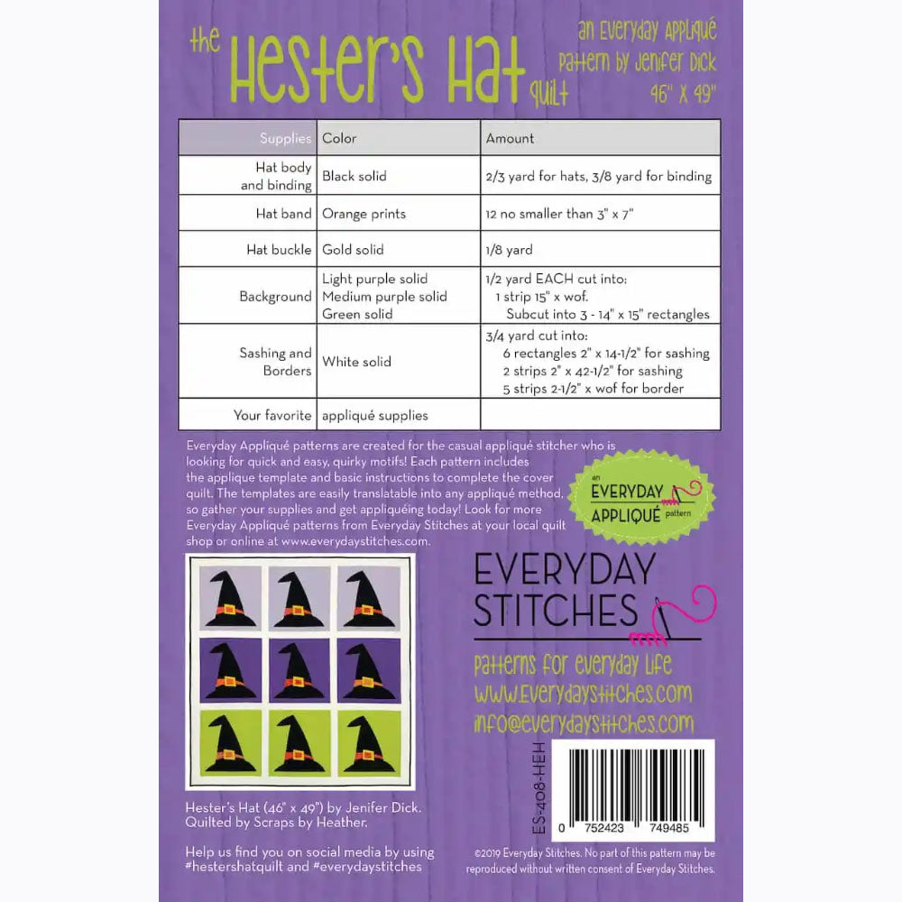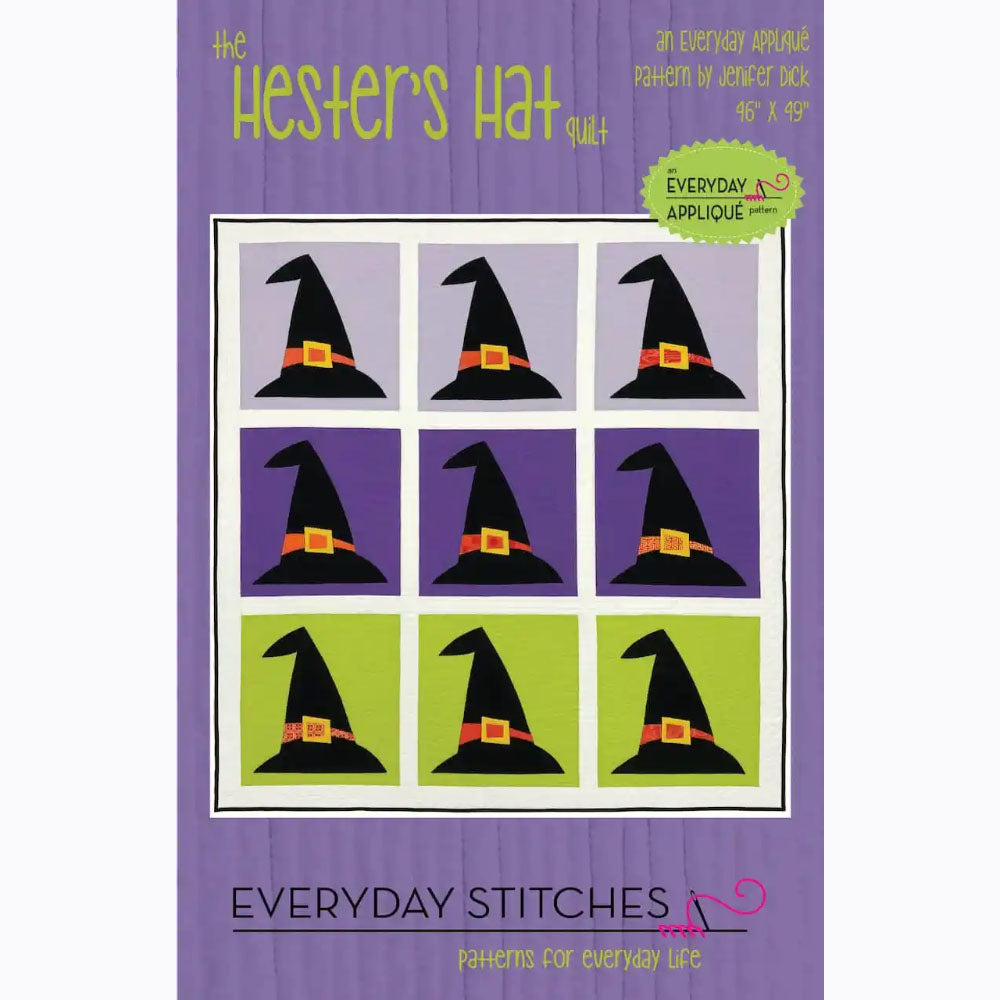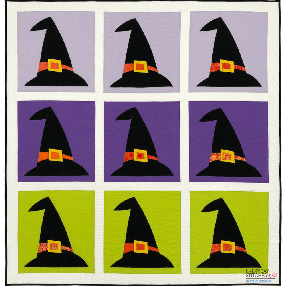 The Hester’s Hat Quilt Pattern from Everyday Stitches is a fun Halloween wall hanging featuring enchanting witches’ hats! With your choice of coordina