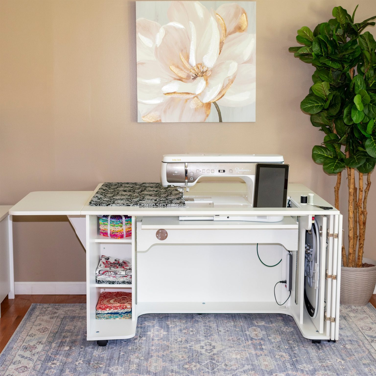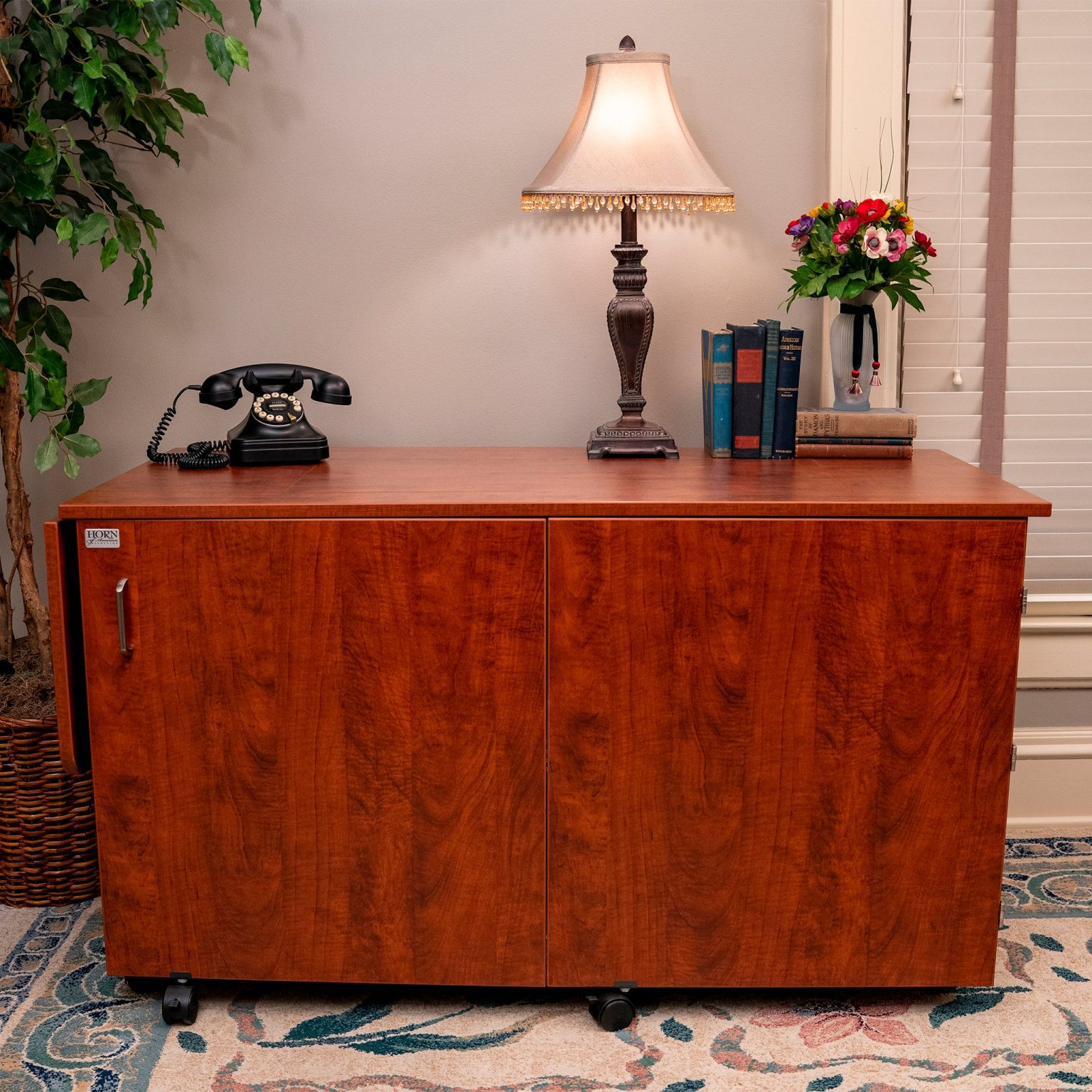 If you’re short on space but still want a cabinet that can comfortably accommodate today’s largest sewing and embroidery machines, the Horn of America