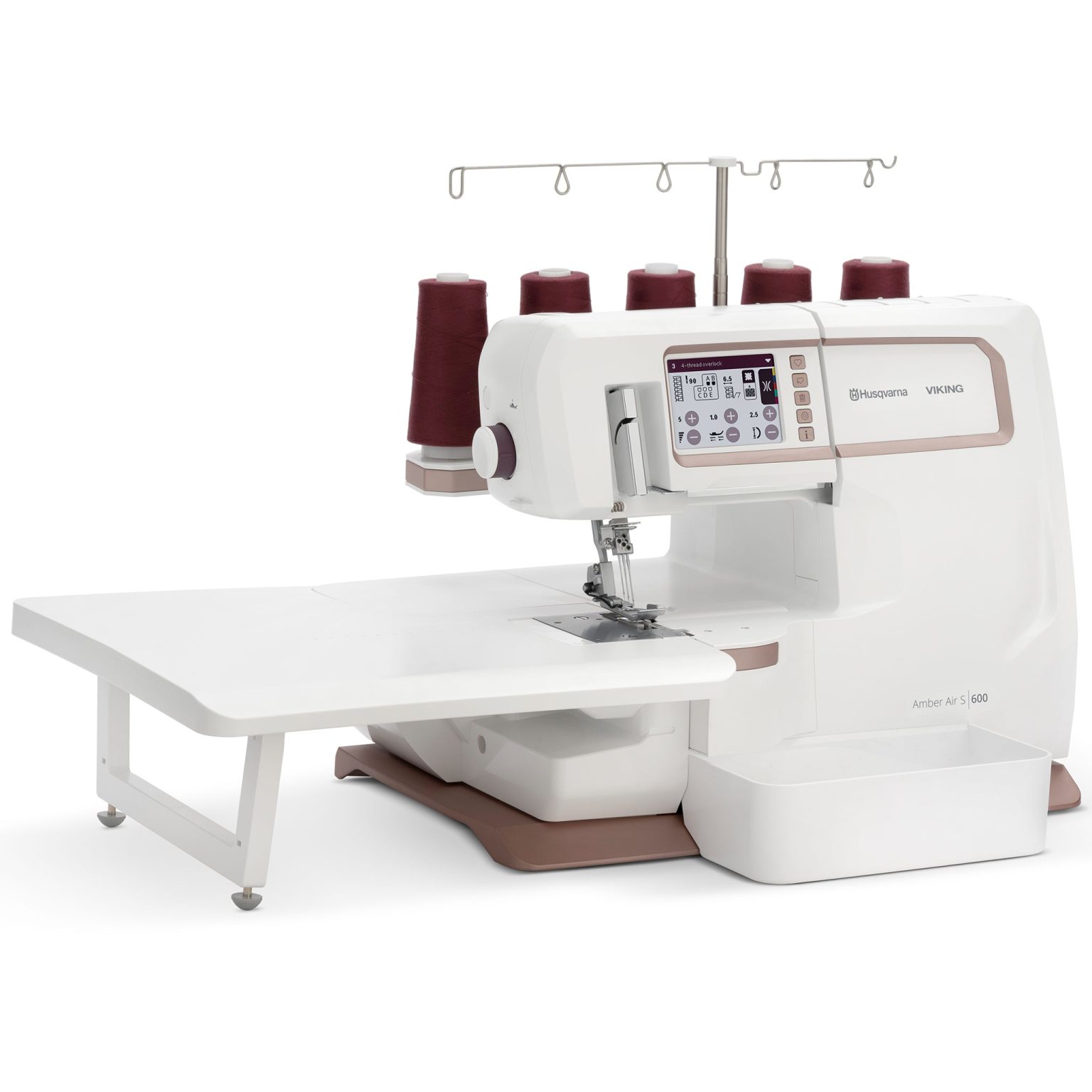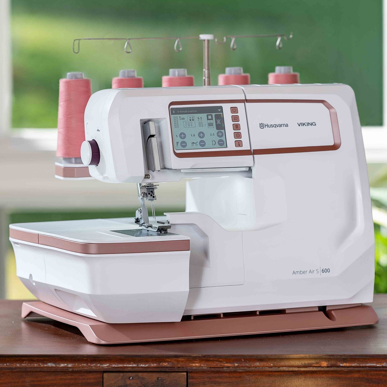 The Husqvarna Viking Amber Air S | 600 is designed for sewing enthusiasts who want precision and ease of use in an overlock machine. This model featur