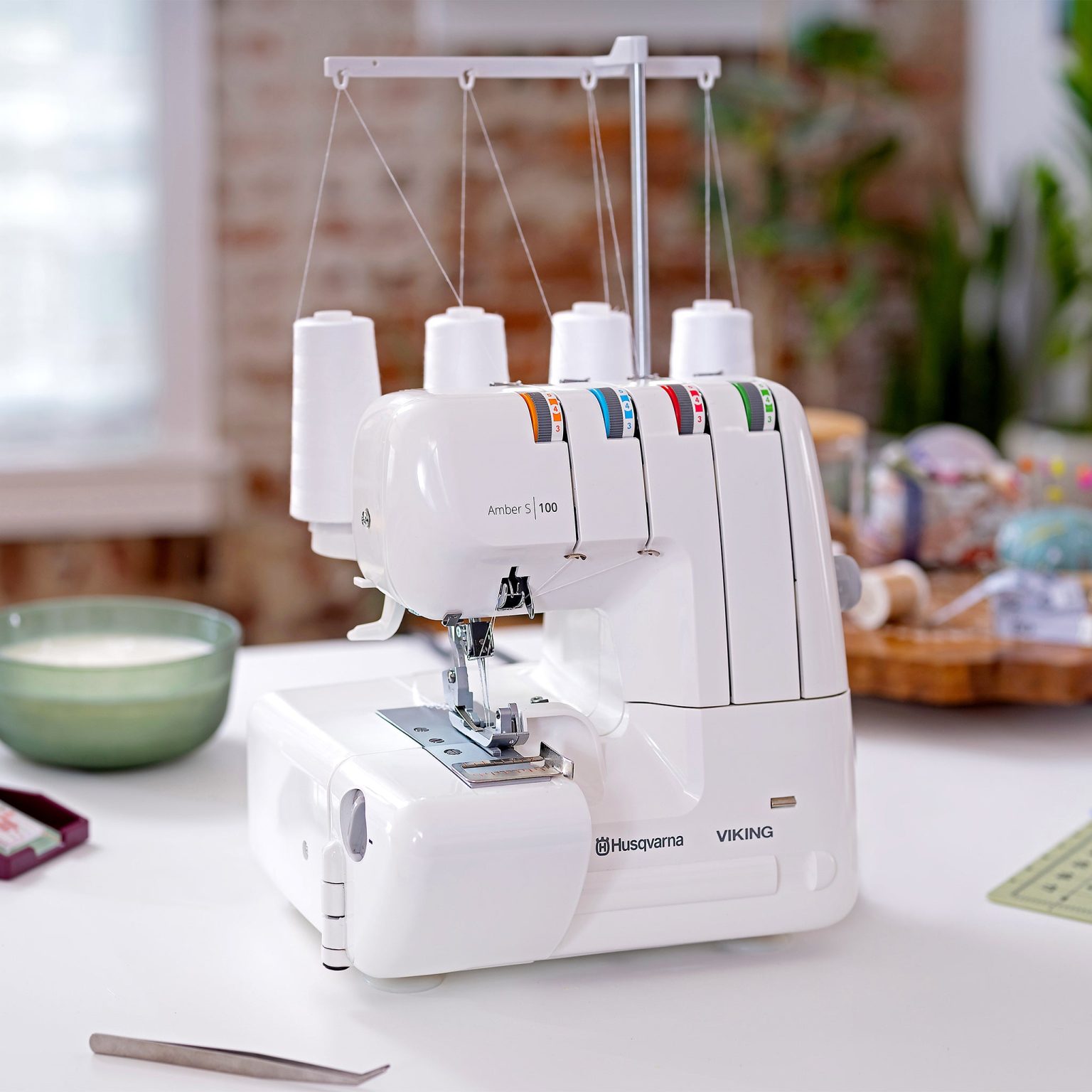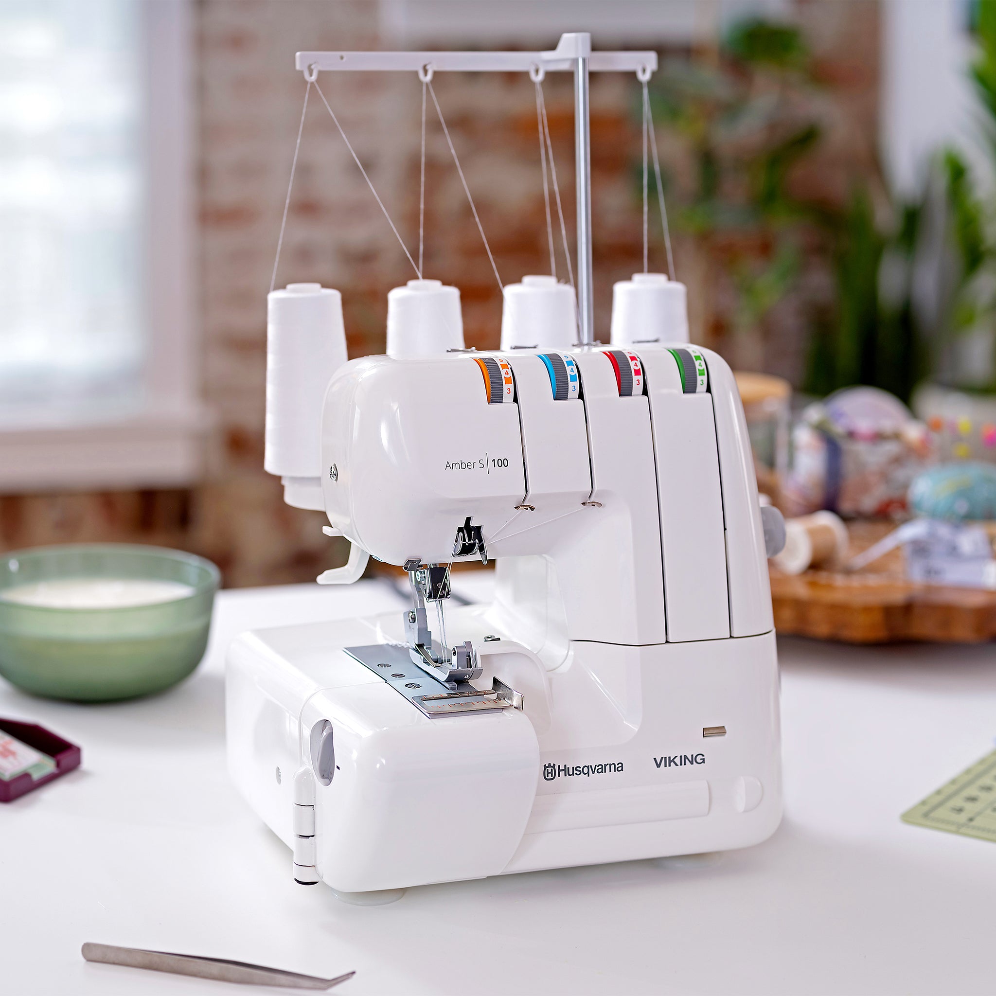 The HUSQVARNA® VIKING® AMBER™ S | 100 is a versatile and user-friendly serger, designed to bring professional-quality finishes to your sewing projects