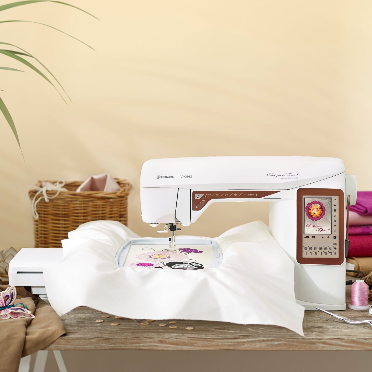 The Husqvarna Viking Designer Topaz 40 Sewing & Embroidery Machine is a high-performance, feature-rich machine that caters to both sewing and embr