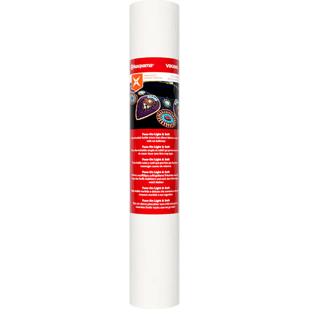 Husqvarna Viking Fuse-On Light & Soft Stabilizer is a soft, fusible tricot stabilizer designed to provide gentle support without adding bulk. Its