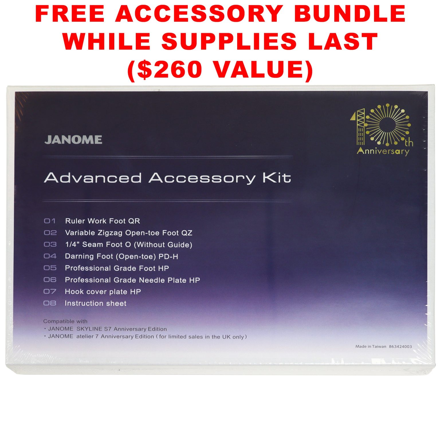 Janome Skyline S7 Anniversary Edition Computerized Quilting Machine w/ FREE Accessory Kit ($260 value)