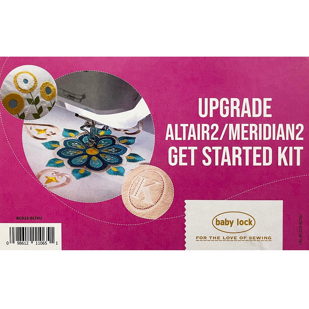 Keep your Meridian and Altair up to date with all the latest accessories Baby Lock has to offer with the new Get Started Upgrade Kit. This impressive