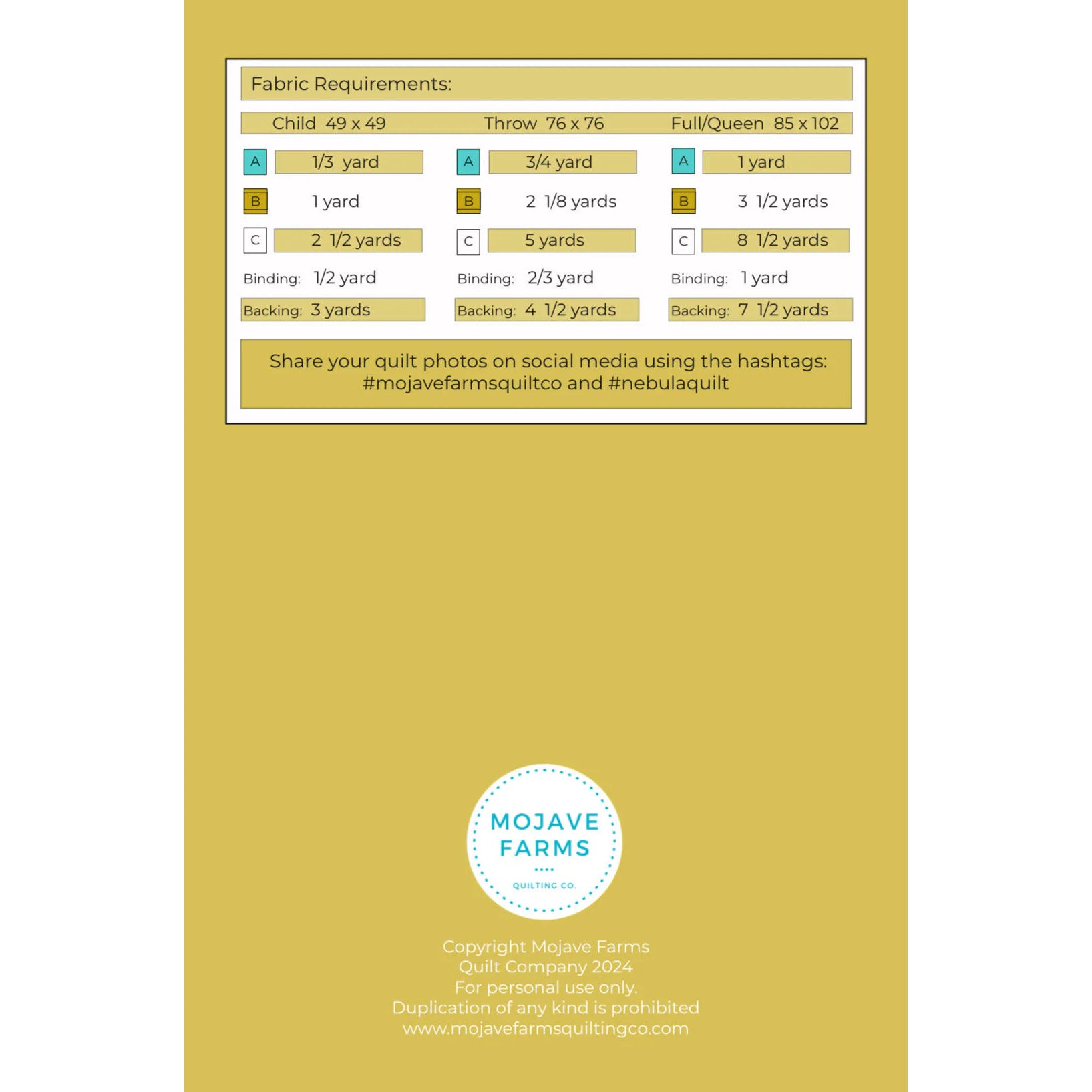 Designed by Ellen Perez, the Nebula Quilt Pattern from Mojave Farms is a mesmerizing design inspired by the vast beauty of the cosmos. Featuring intri