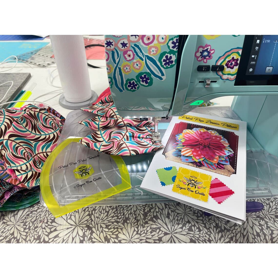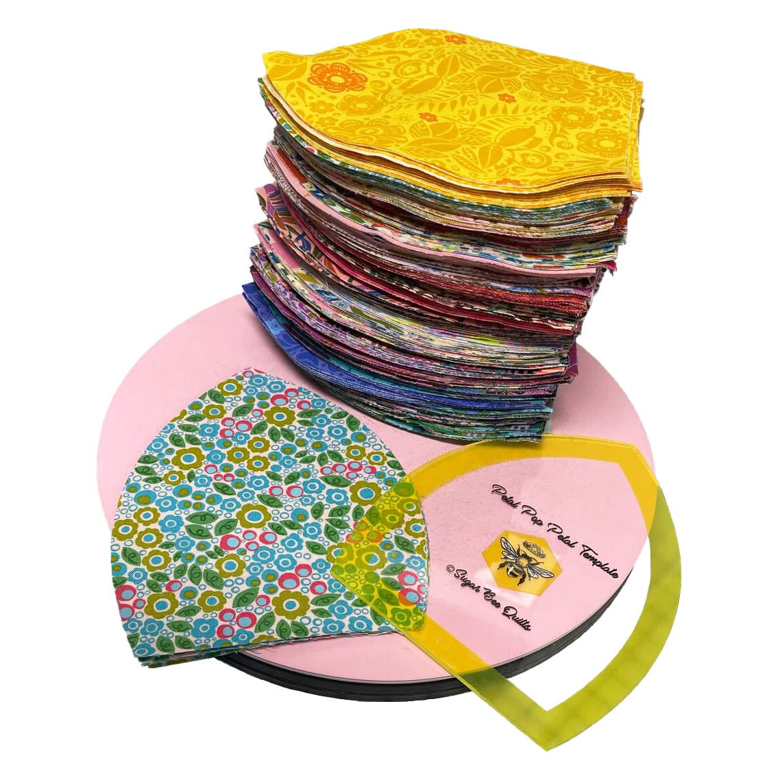 Jeana Culbert designed the Petal Pop Acrylic Template from Sugar Bee Quilts. This acrylic template is for use with a rotary cutter for the following p