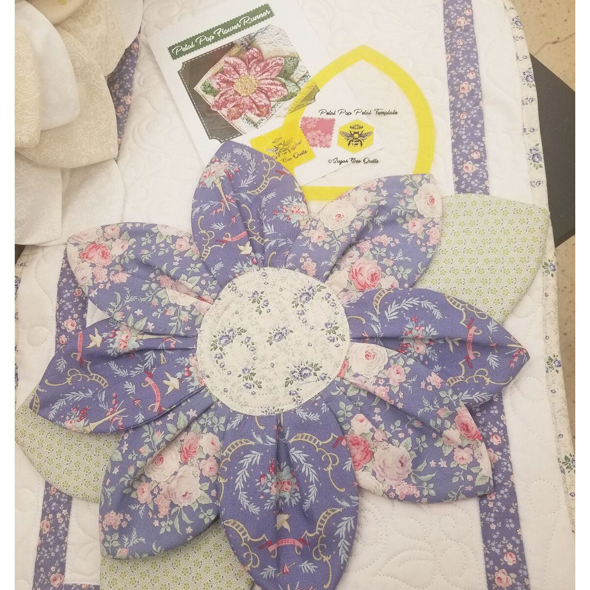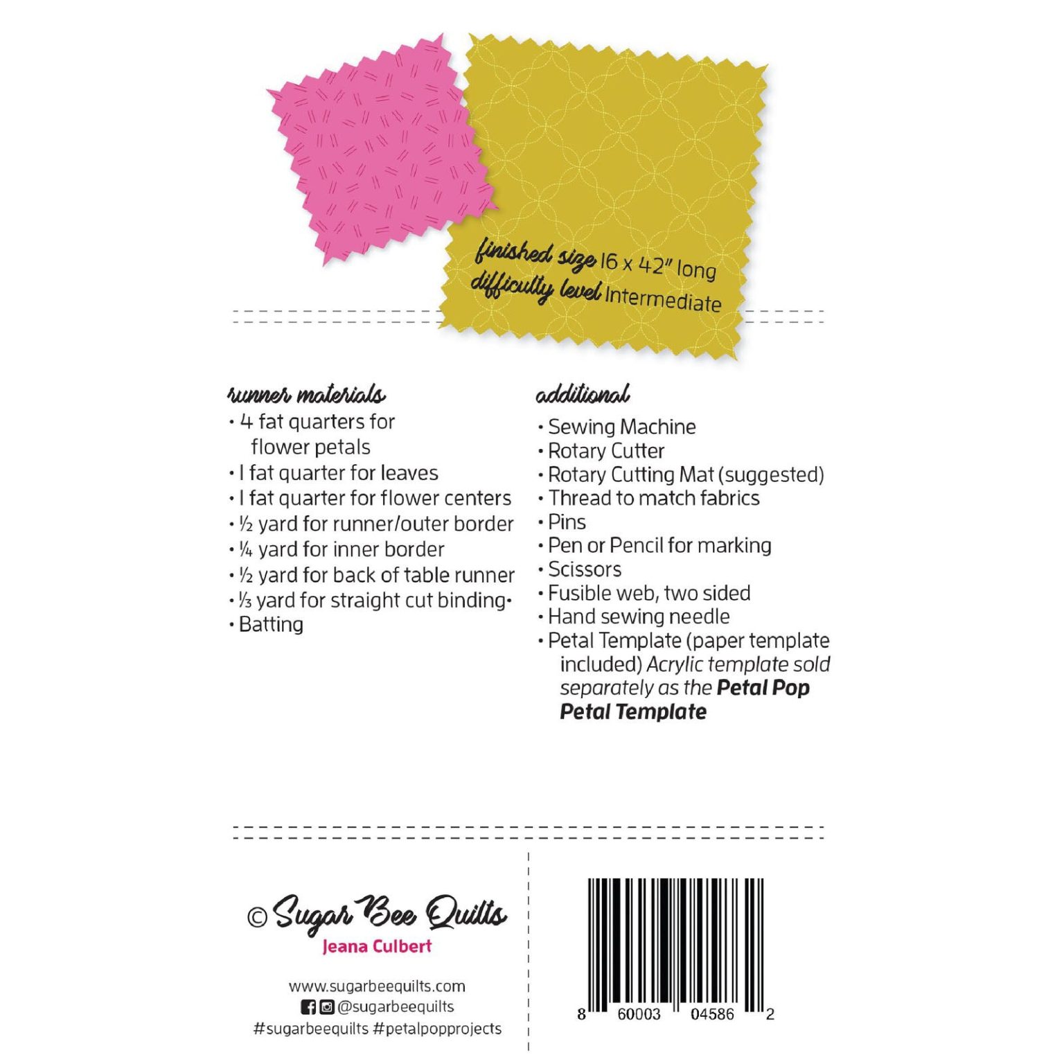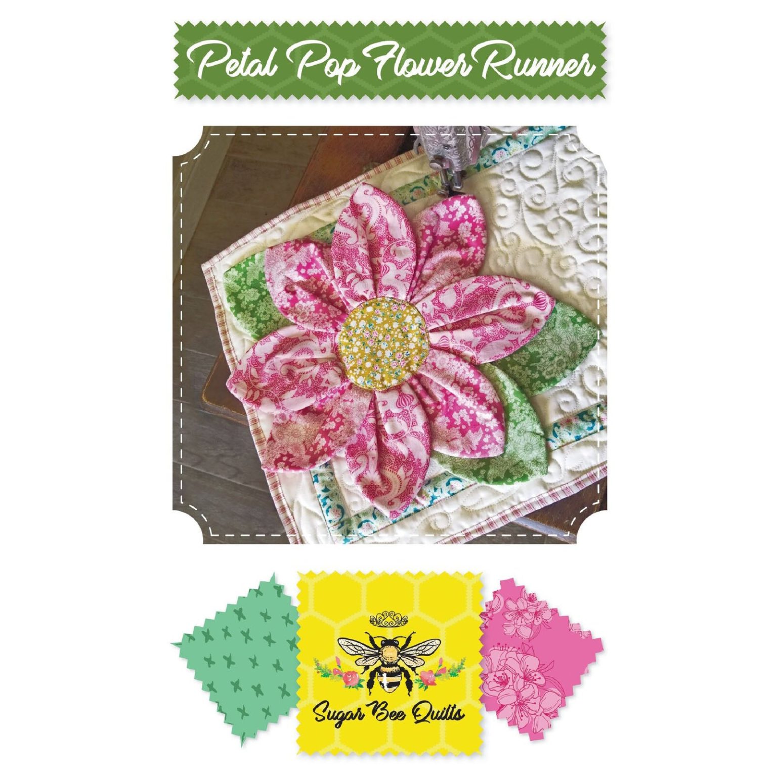 Jeana Culbert designed the Petal Pop Flower Table Runner Pattern from Sugar Bee Quilts. This pattern includes instructions on how to create a charming