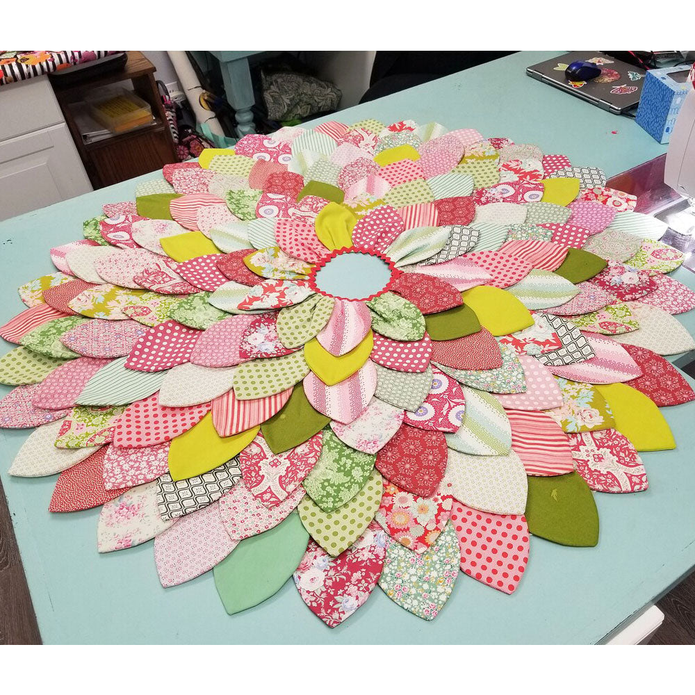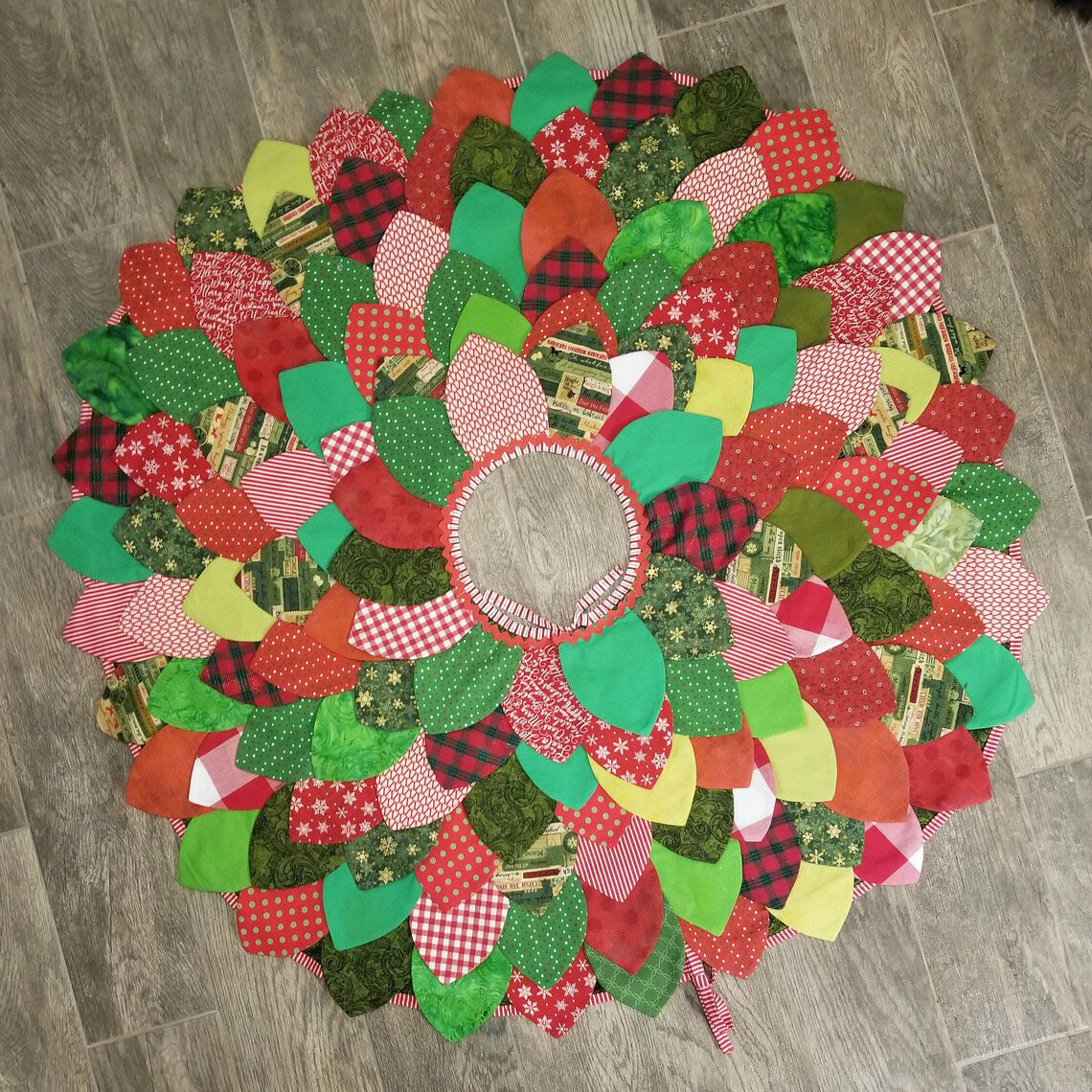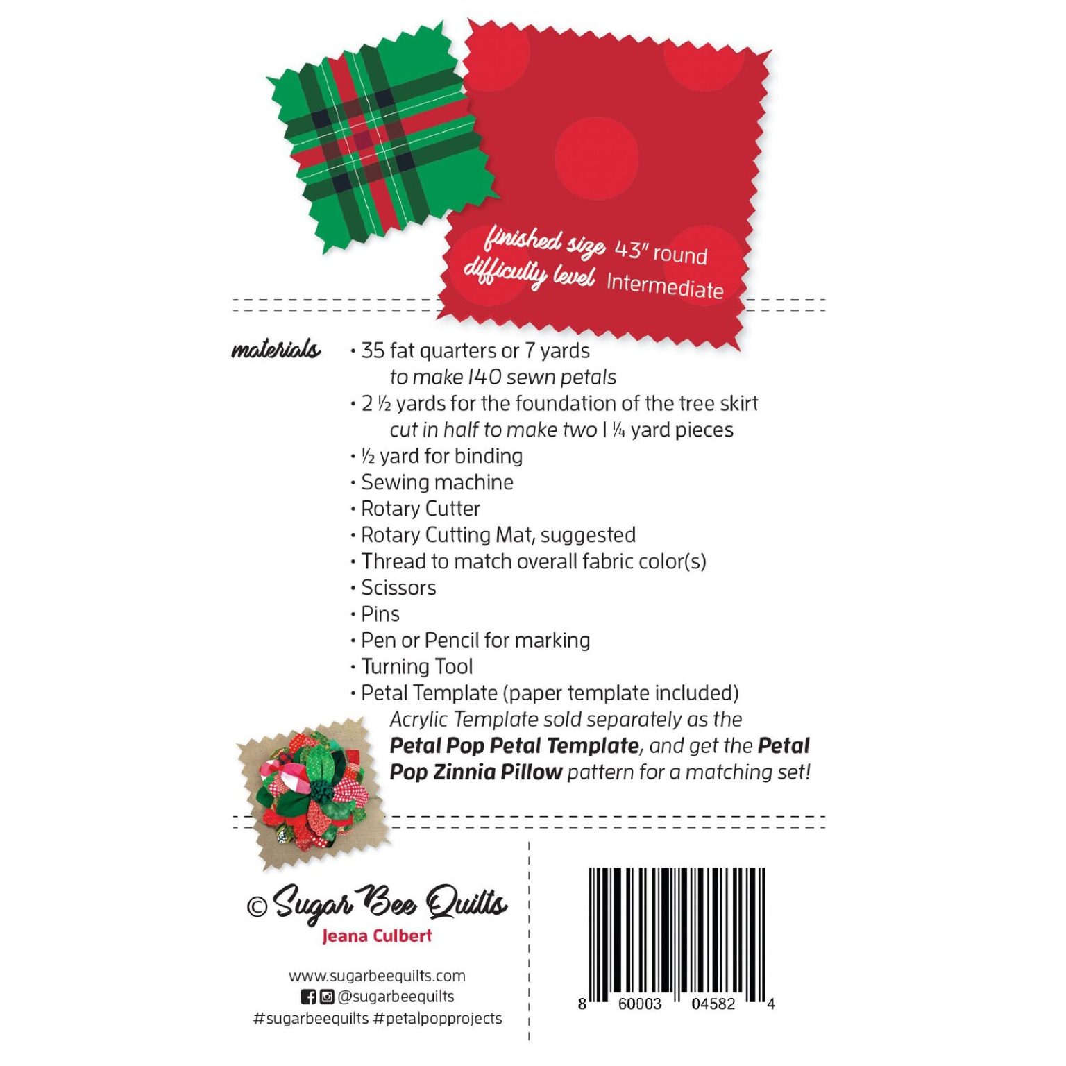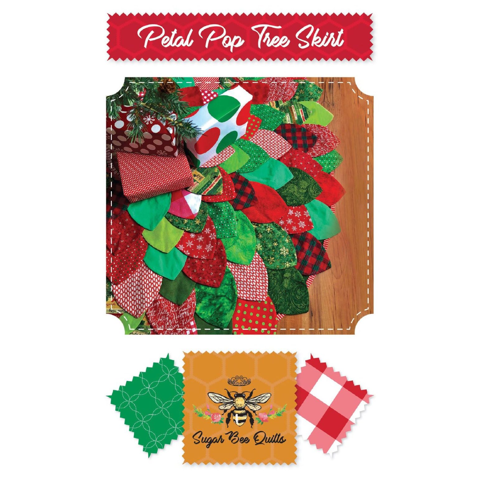 The Petal Pop Tree Skirt Pattern from Sugar Bee Quilts was designed by Jeana Culbert. This pattern includes instructions on how to create an eye-catch