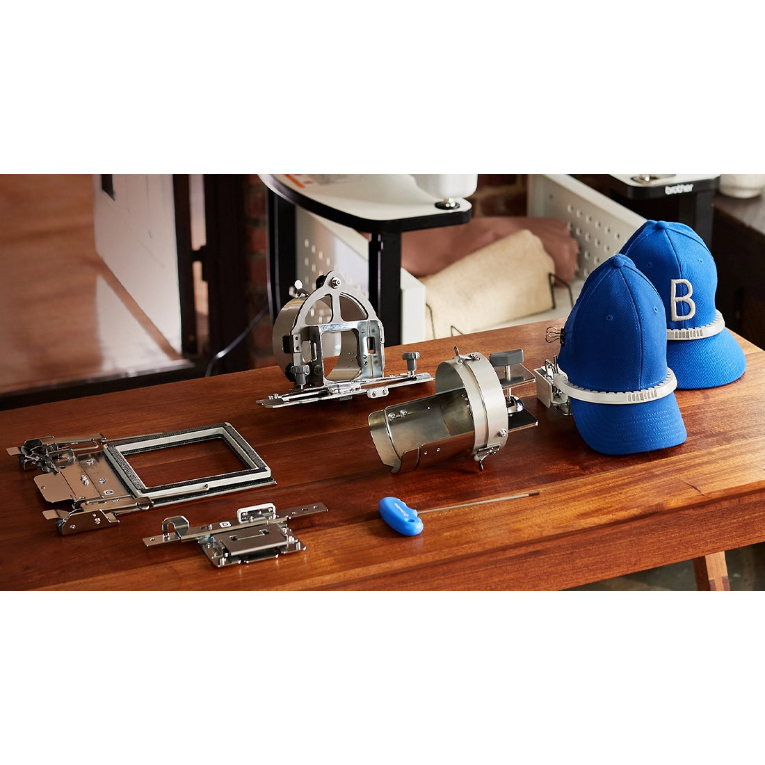 The Brother Sports Kit, PRSPRTKIT1, is a comprehensive accessory package designed to elevate your embroidery capabilities, specifically tailored for s