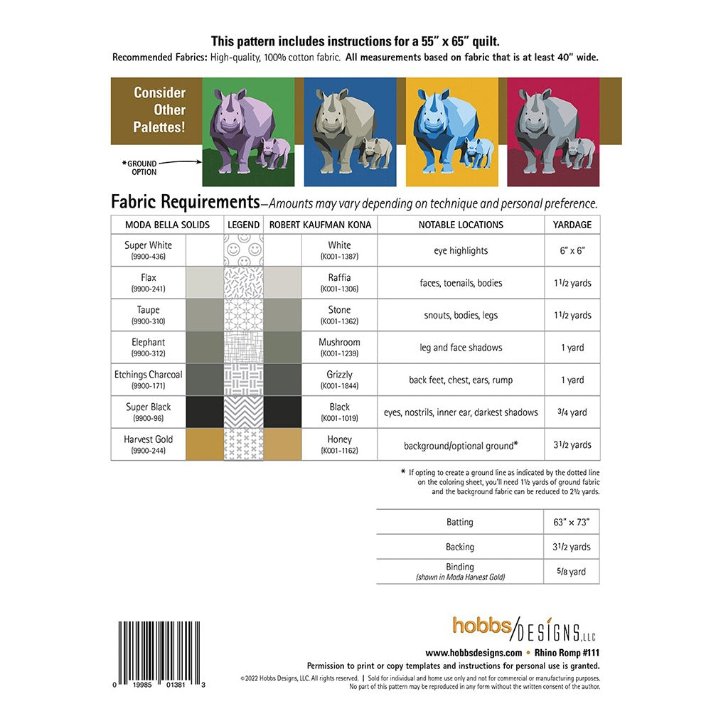Explore the African Savanna with the Rhino Romp Quilt Pattern. The quilt features a critically endangered rhino and her calf. This finished throw-size